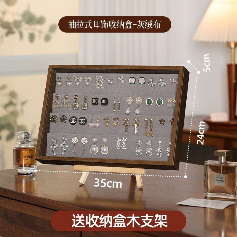 Color: Gray velvet storage earrings, earrings + stand [large capacity can hold 50 pairs]