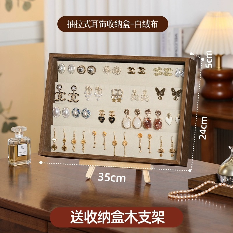 Color: White velvet storage earrings, earrings + stand [large capacity can hold 50 pairs]