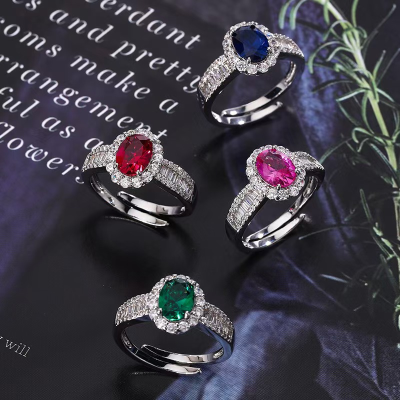 2024 new jewelry copper gold-plated simulation color treasure corundum crystal oval retro shape 8*10