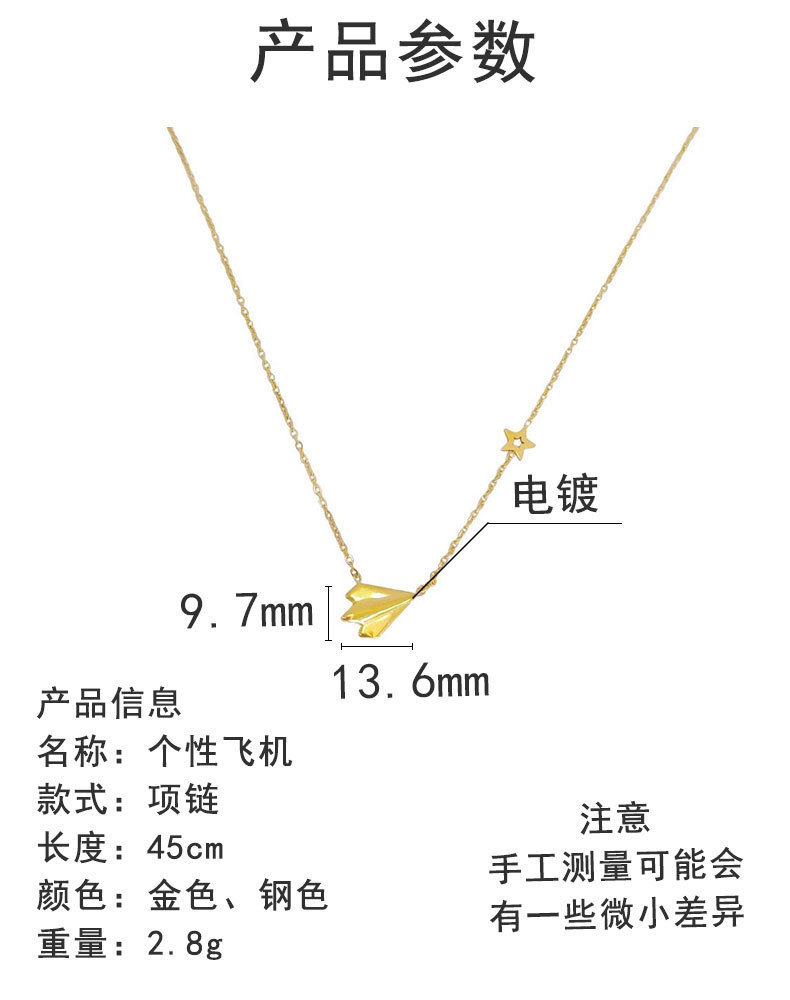 Autumn and Winter Ins New Distinctive Small Aircraft Series Stainless Steel Jewelry suit Women's All-match Fashion Color-free Necklace