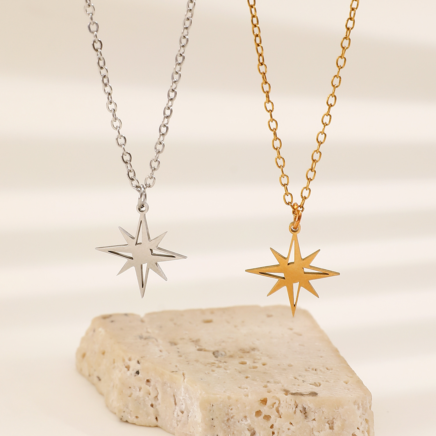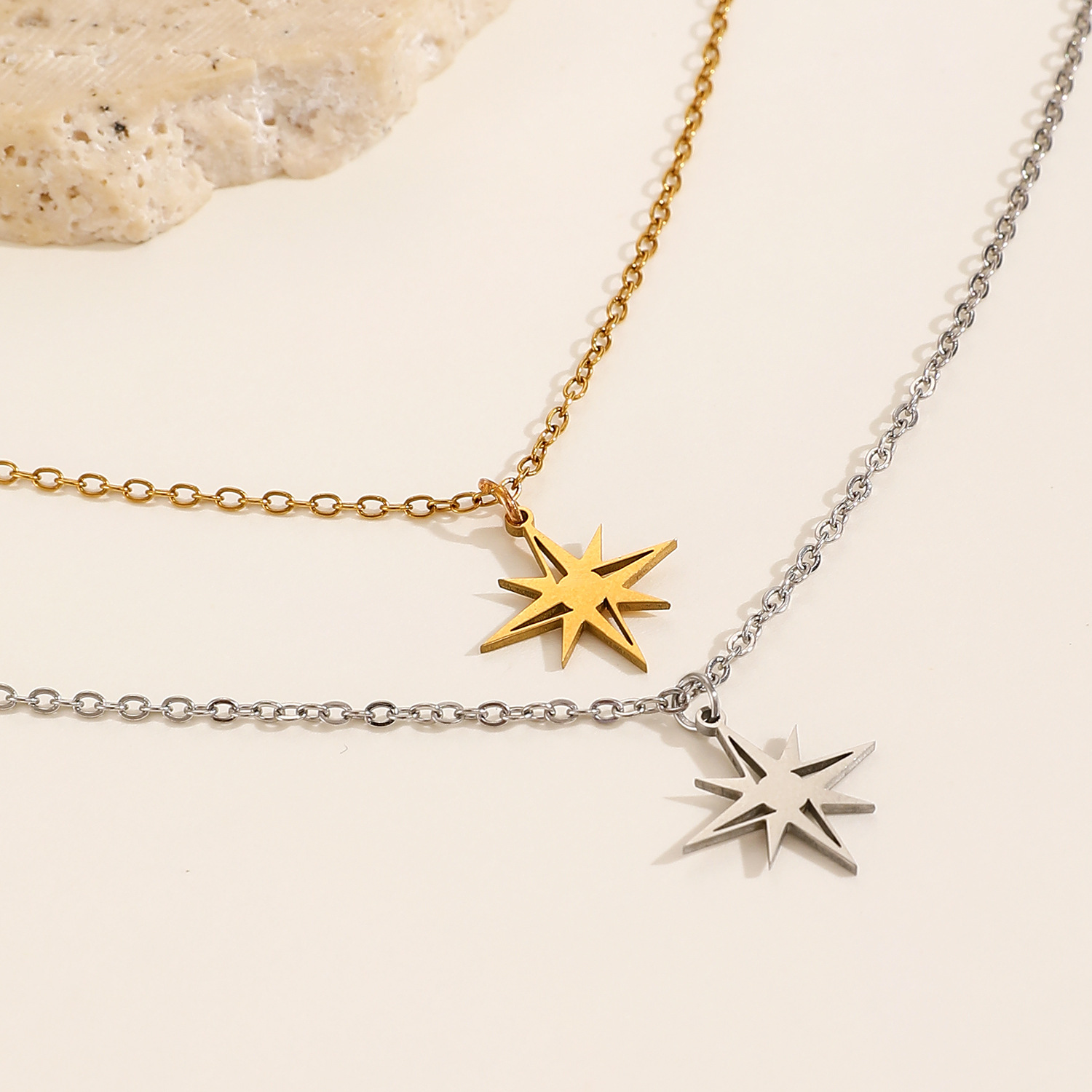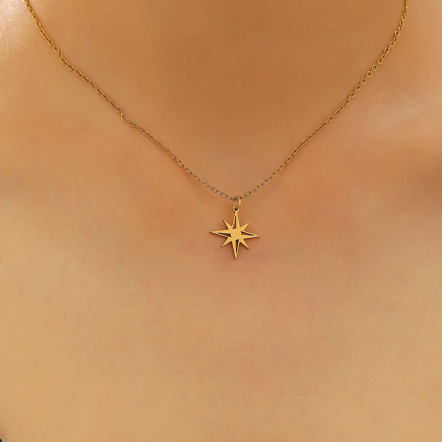 Color: 18k real gold 0877 (stainless steel eight-pointed star)
