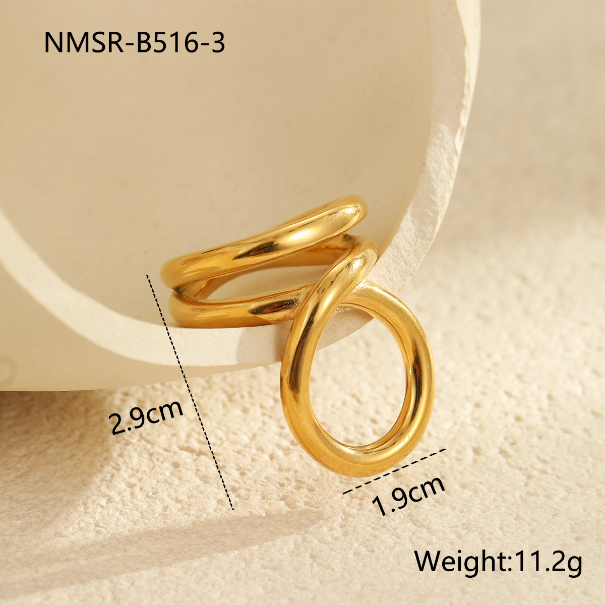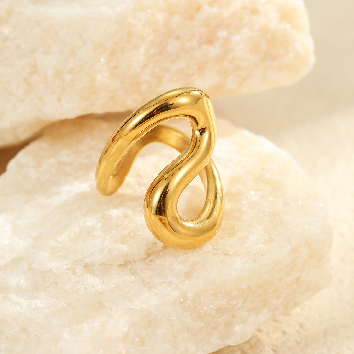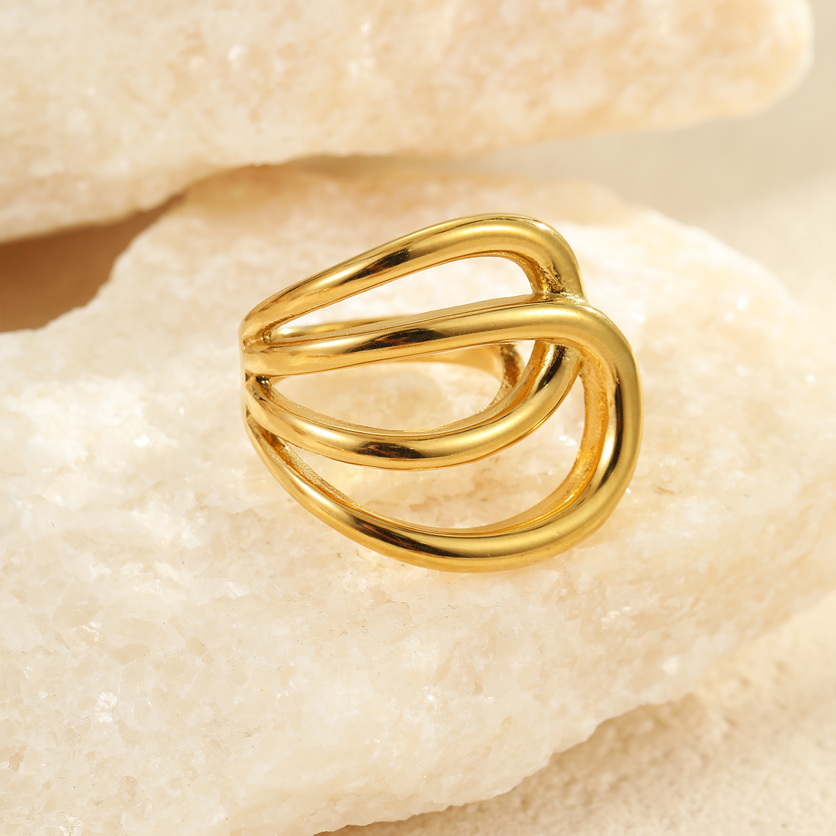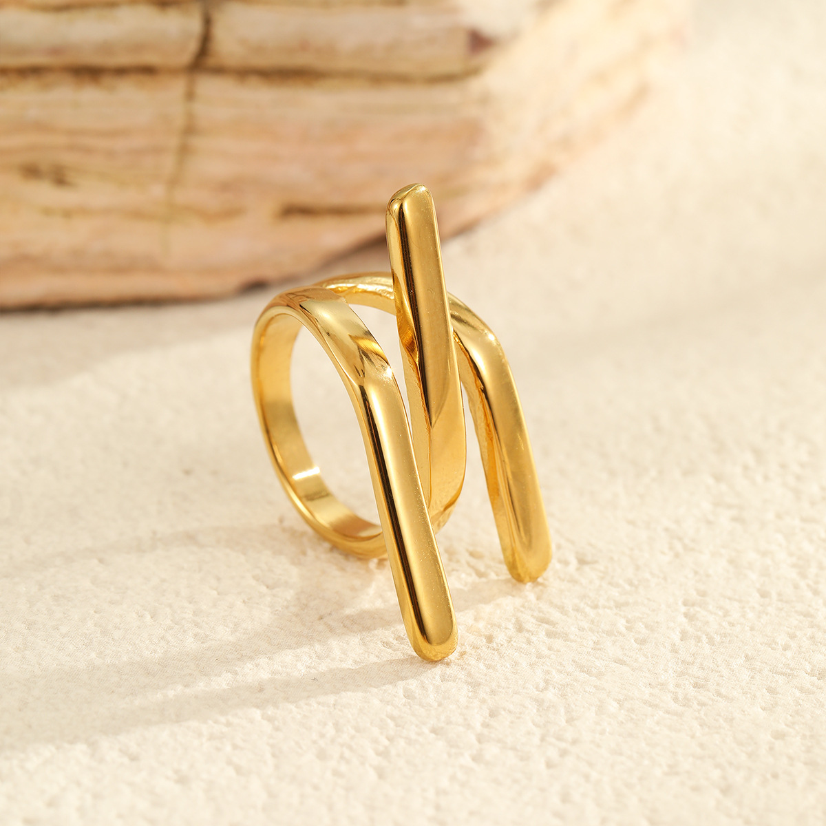 European and American Cross-border Niche Design Sense Geometric Lines Metal Sense Titanium Steel Ring Women's High-grade Personalized Stainless Steel Ring