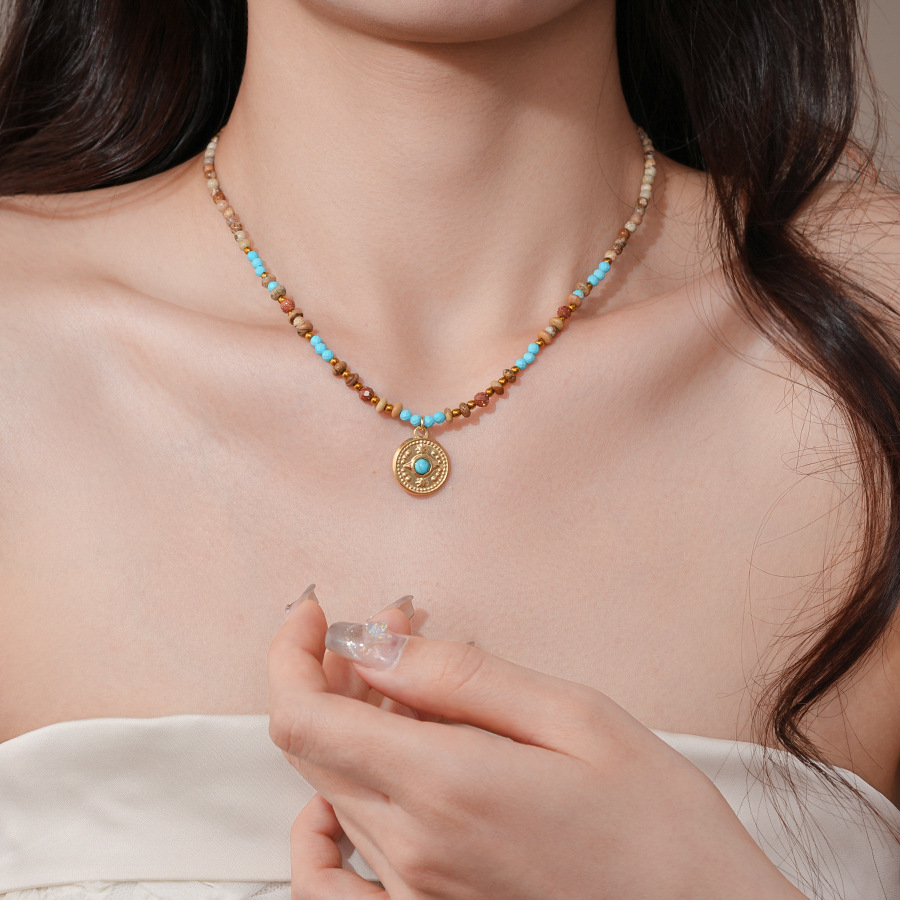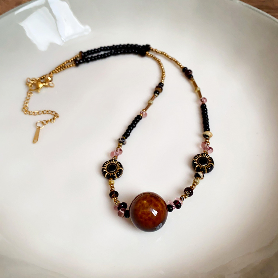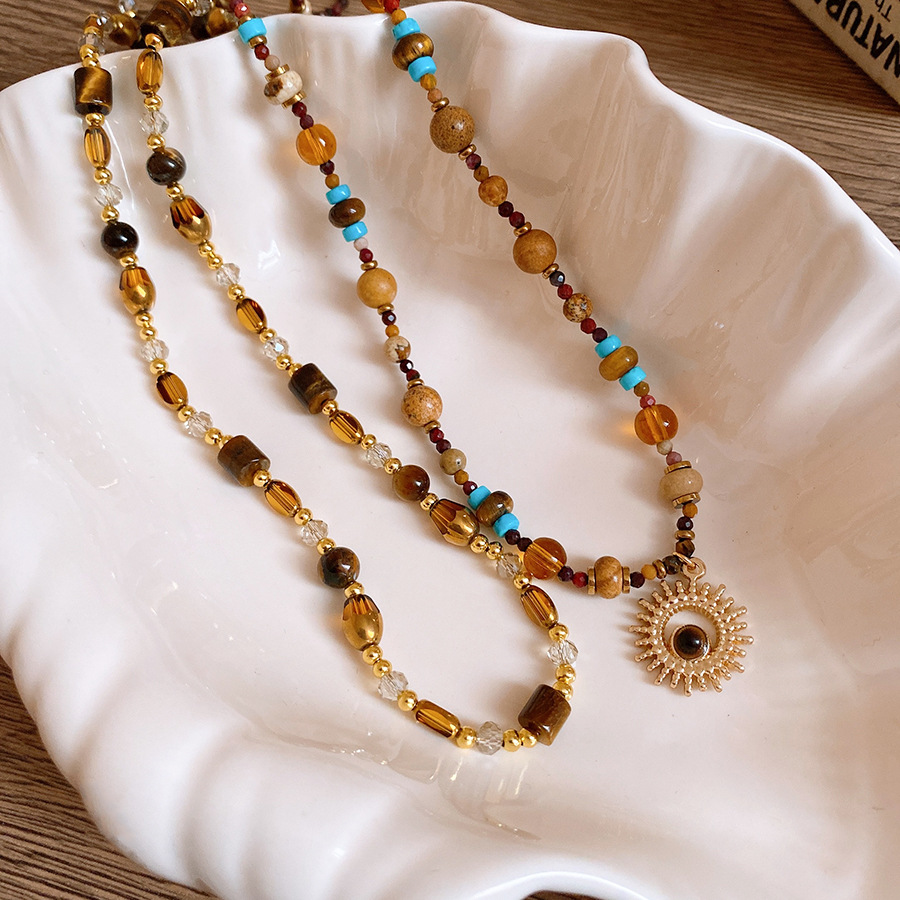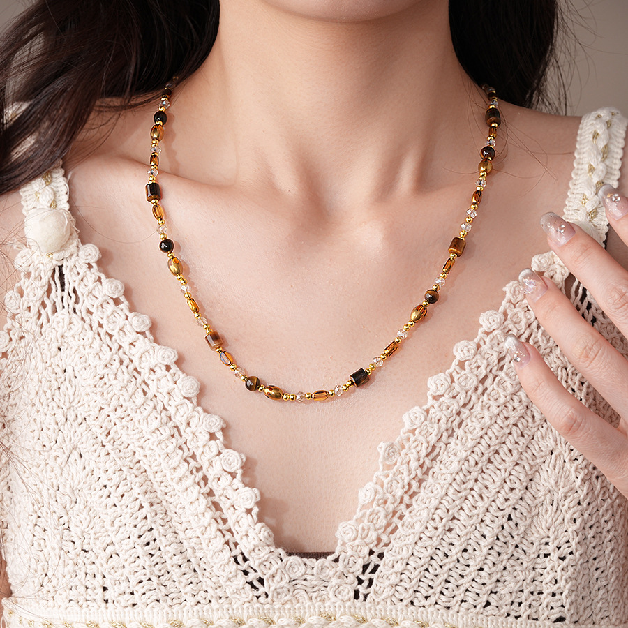Color: 39#Necklace-gold-brown-tiger eye stone