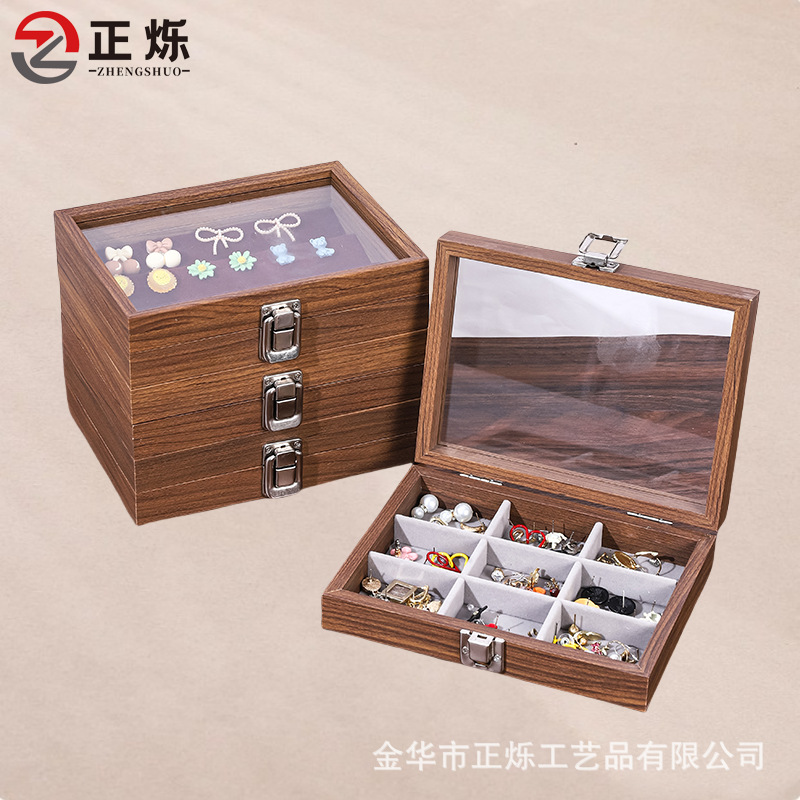 Color: Walnut small inner gray earring box