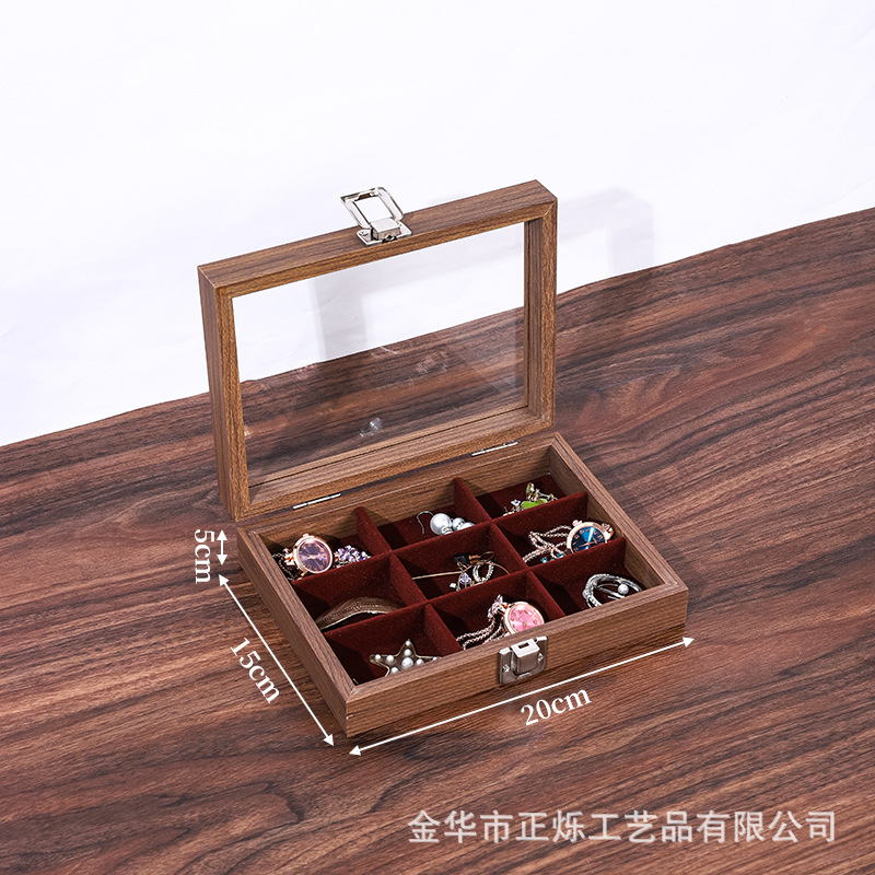 Color: Walnut color small inner red 12 grid box