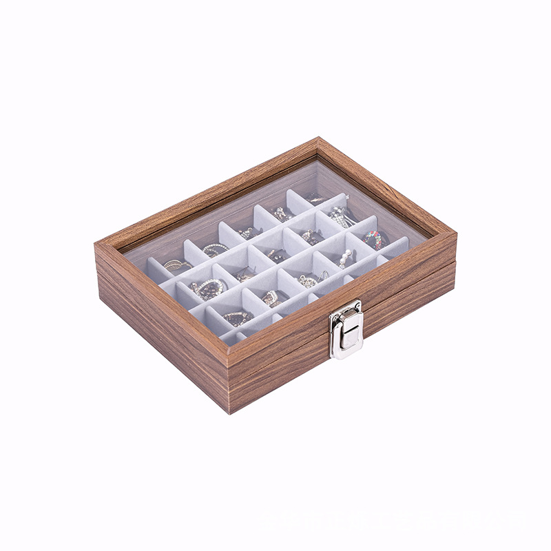Color: Walnut color small inner gray 24 grid box