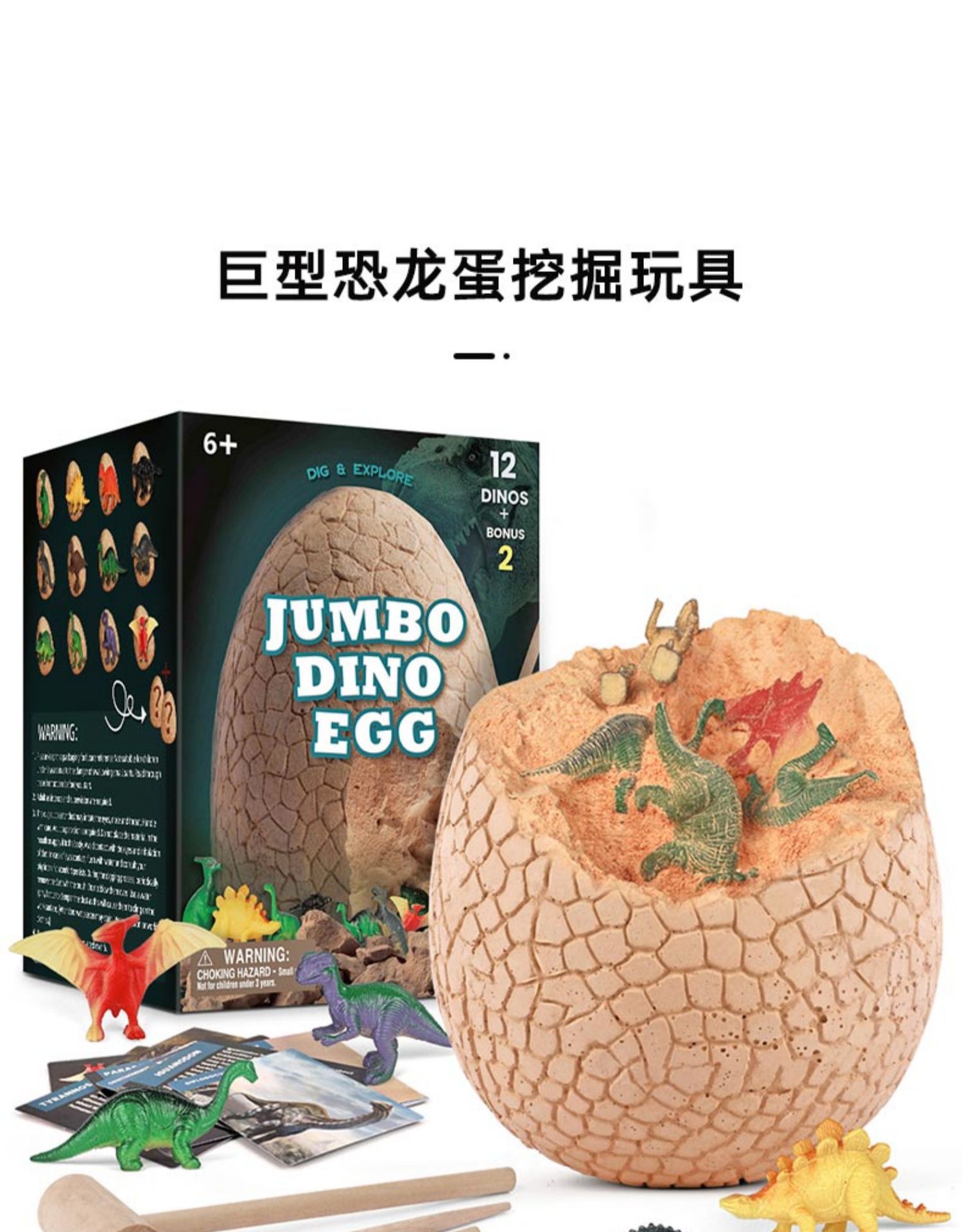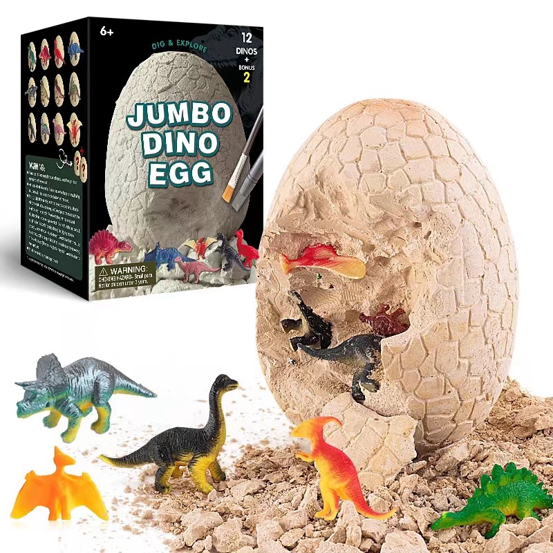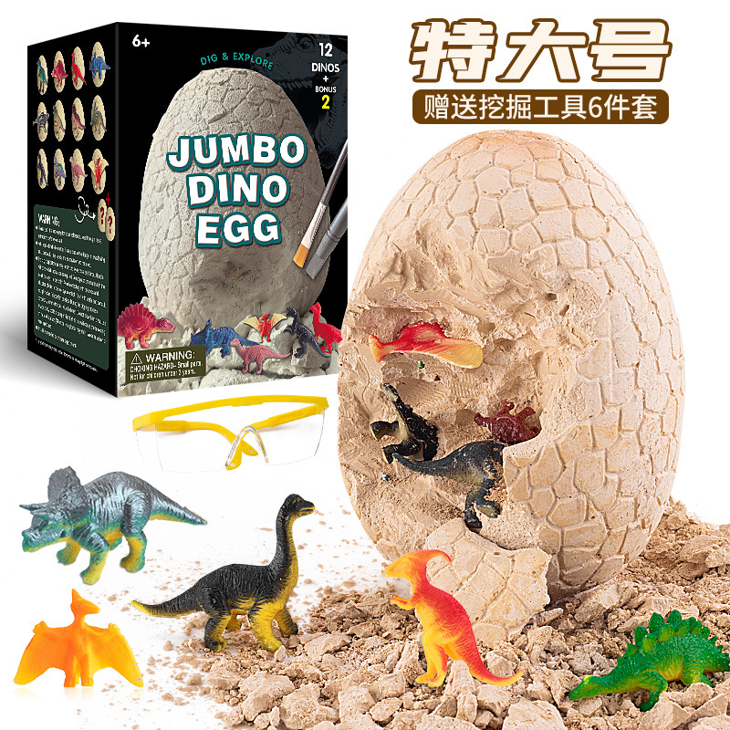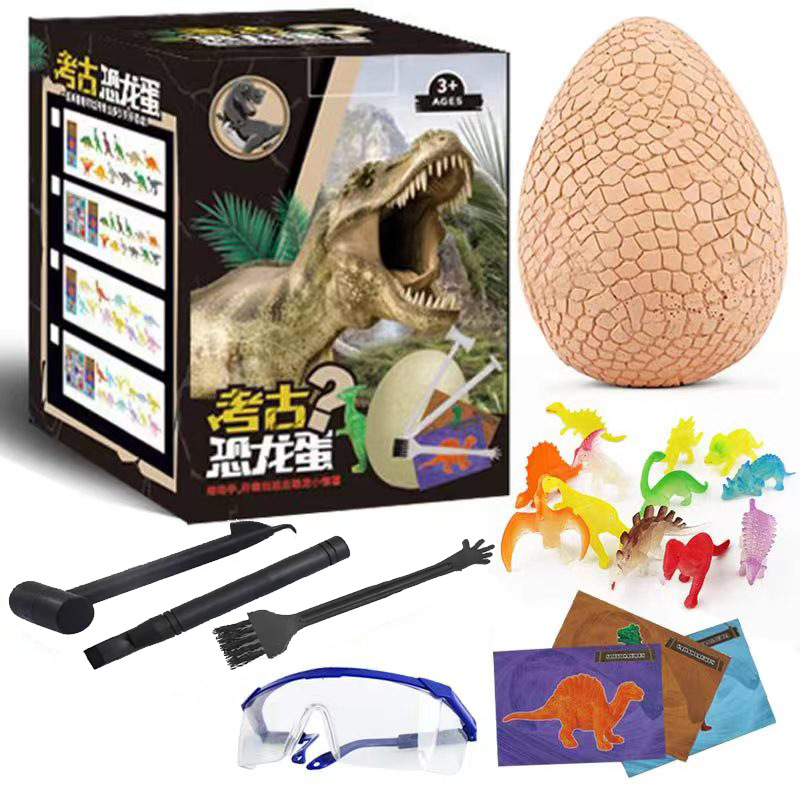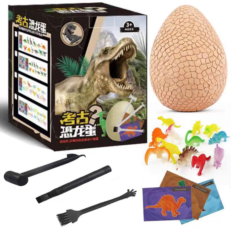 Color: Giant dinosaur eggs (including 15 dinosaurs) come with hammer, chisel and brush