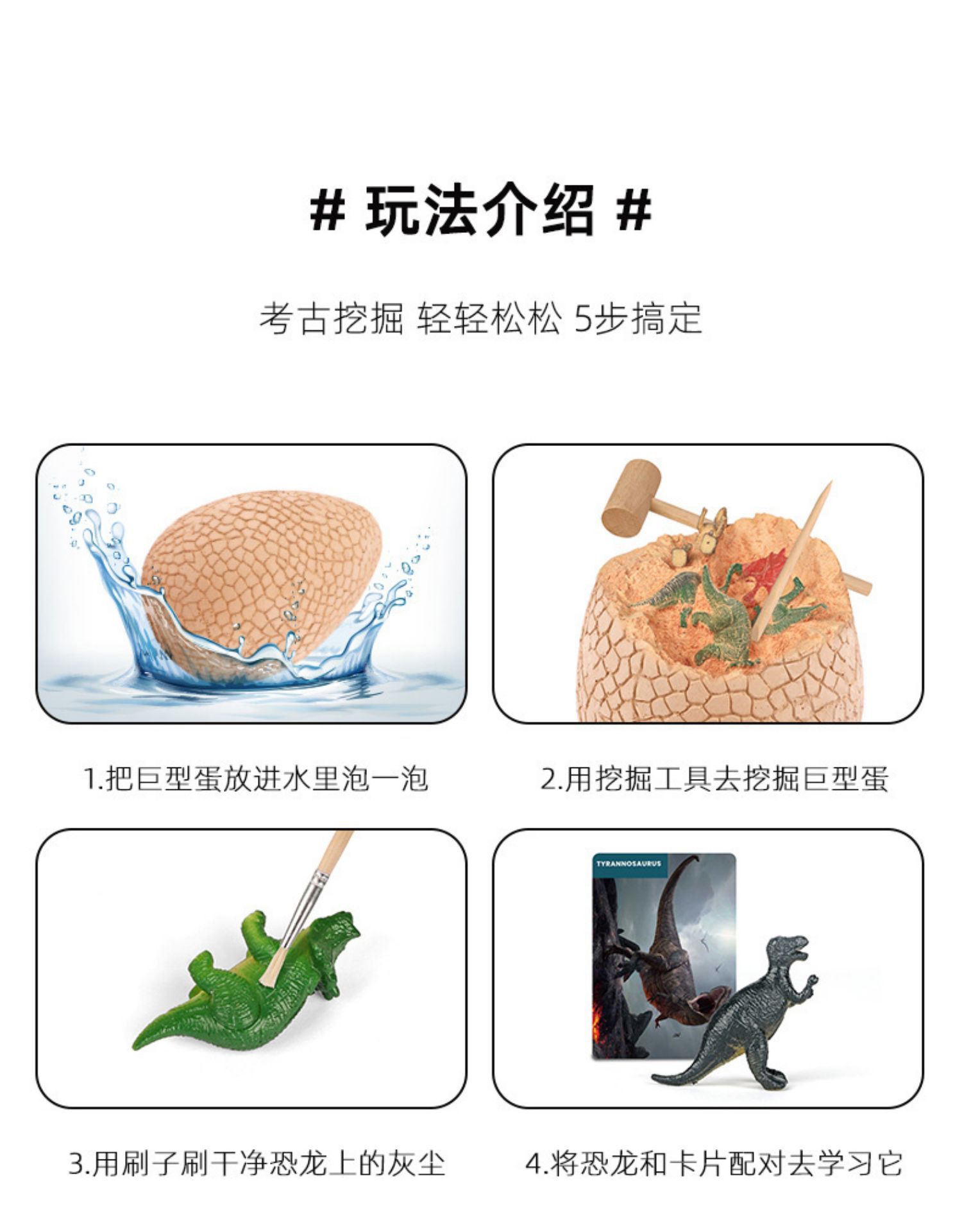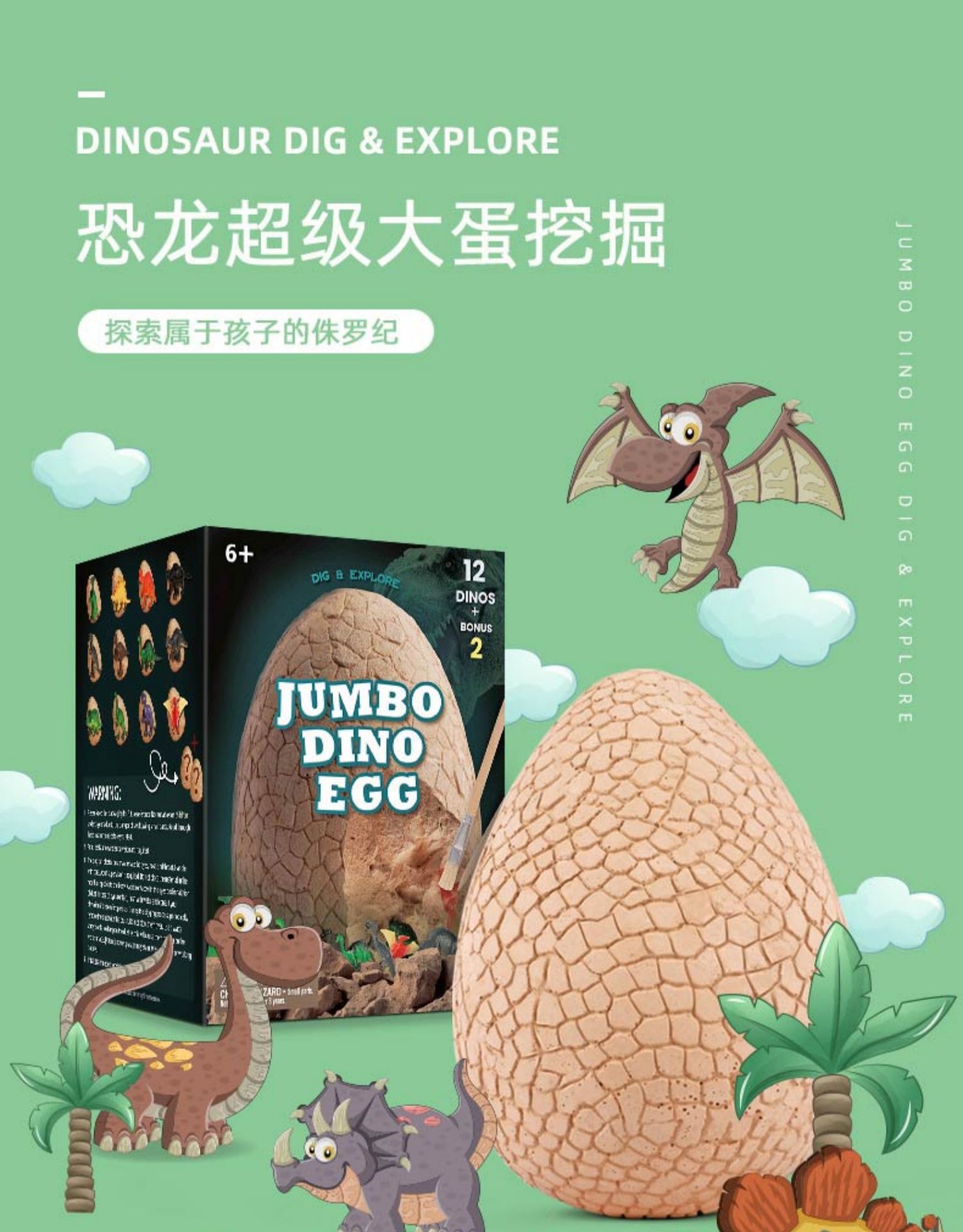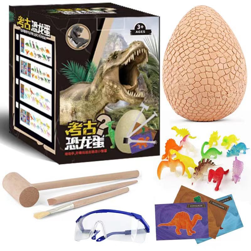 Color: Giant dinosaur eggs (including 15 dinosaurs) come with hammer, chisel and brush