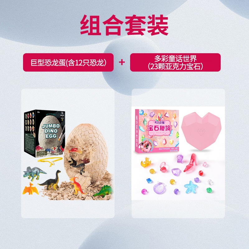 Color: Two packs: giant dinosaur eggs + super big gem collection, two sets of tools included