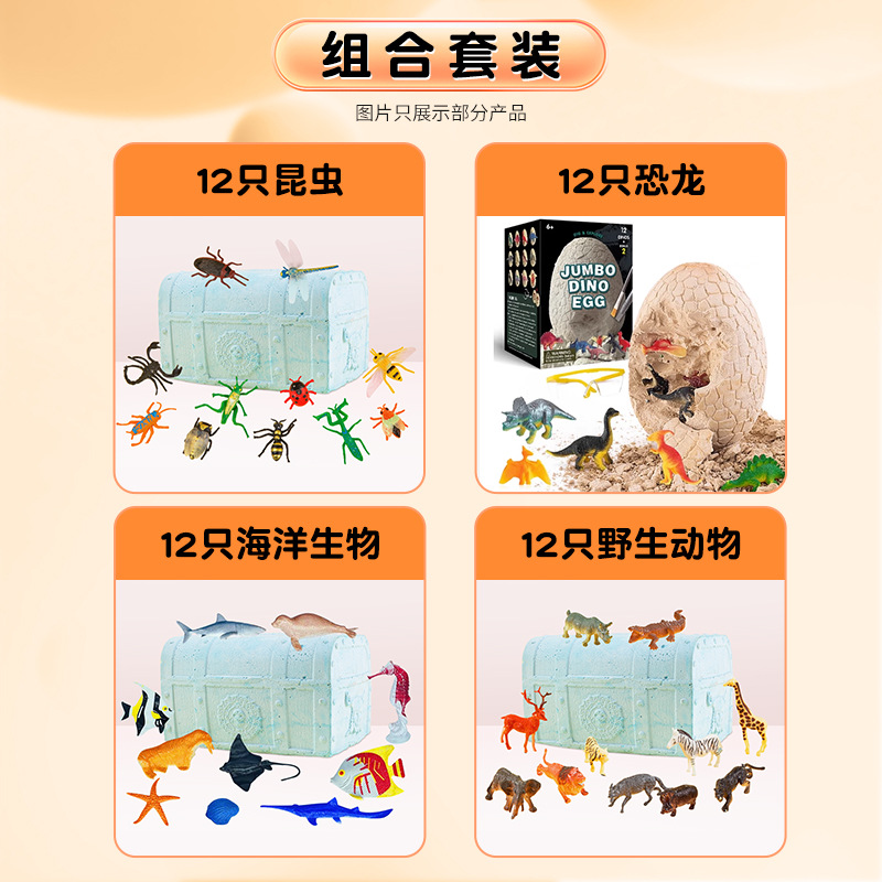 Color: Four packs: giant dinosaur eggs + insect paradise + animal paradise + ocean paradise, two sets of tools included
