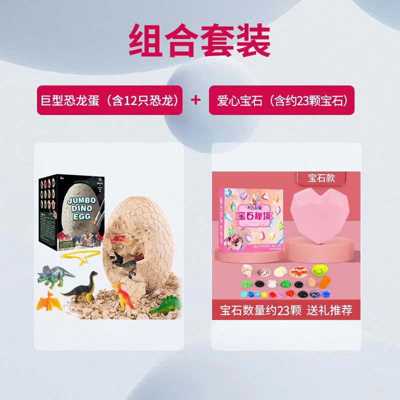 Color: Two boxes: giant dinosaur eggs + boxed love gems, two sets of tools included