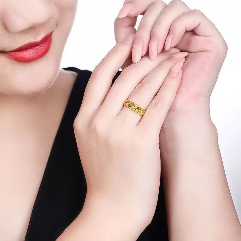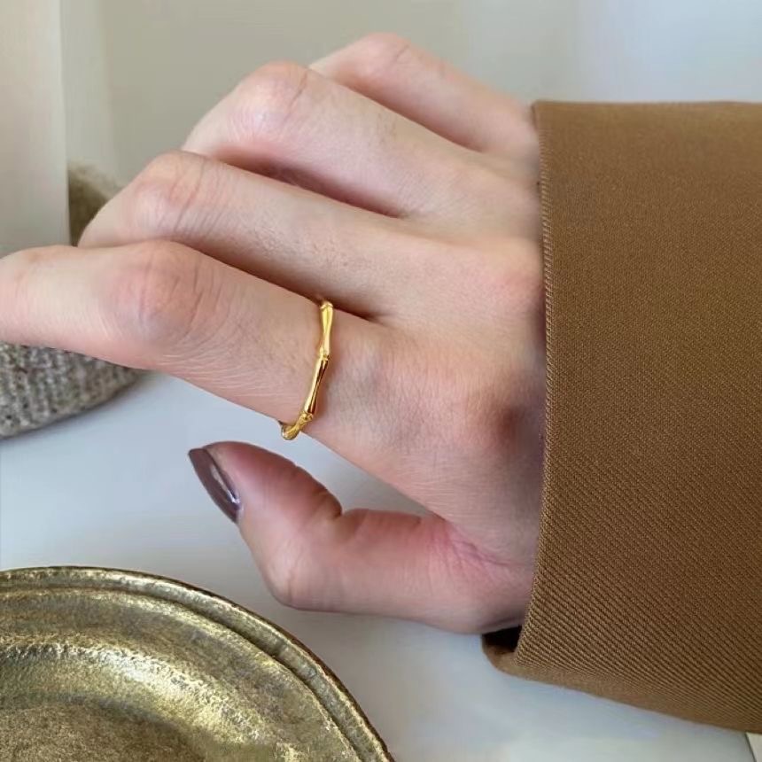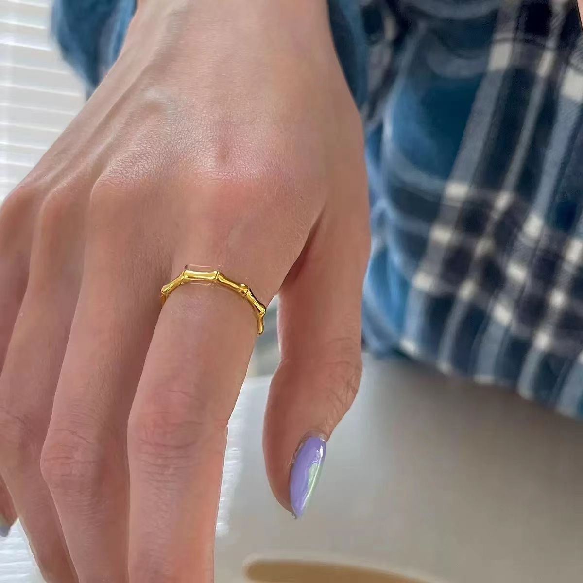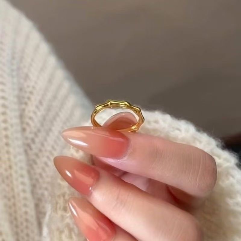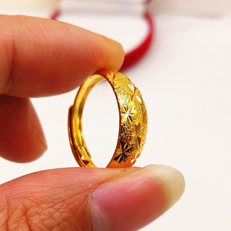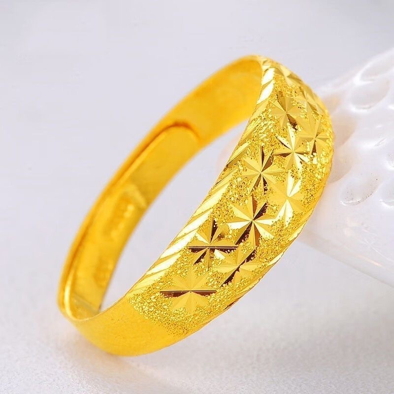 Full Gold Star Ring Couple Ring Copper Silver-Plated Hand Jewelry Popular Bamboo Gold Ring Alloy Opening for Men and Women