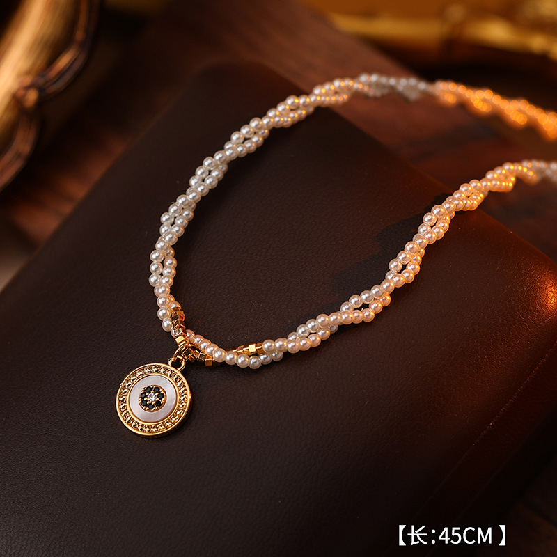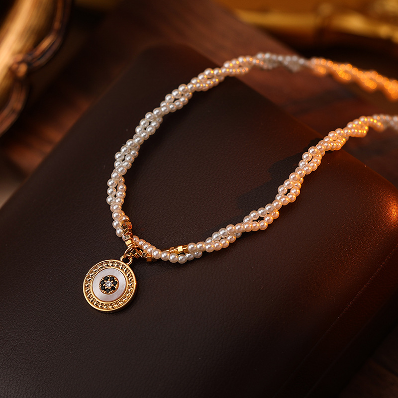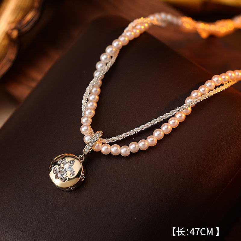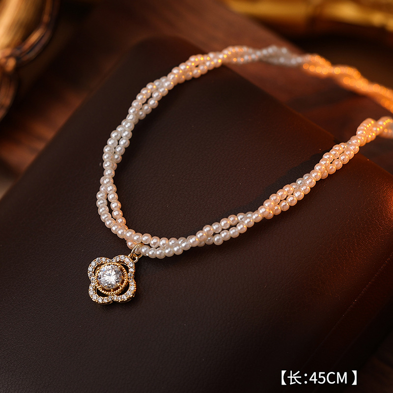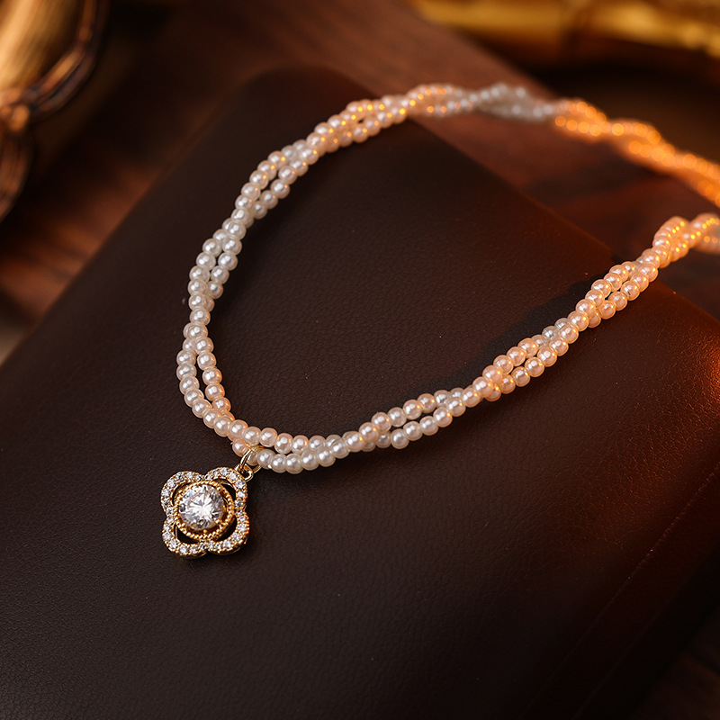 Color: Double-layered wrapped beads—18k clover zircon pendant