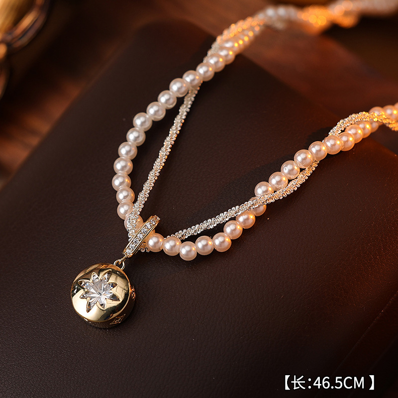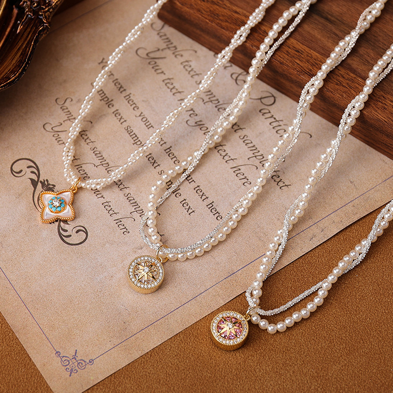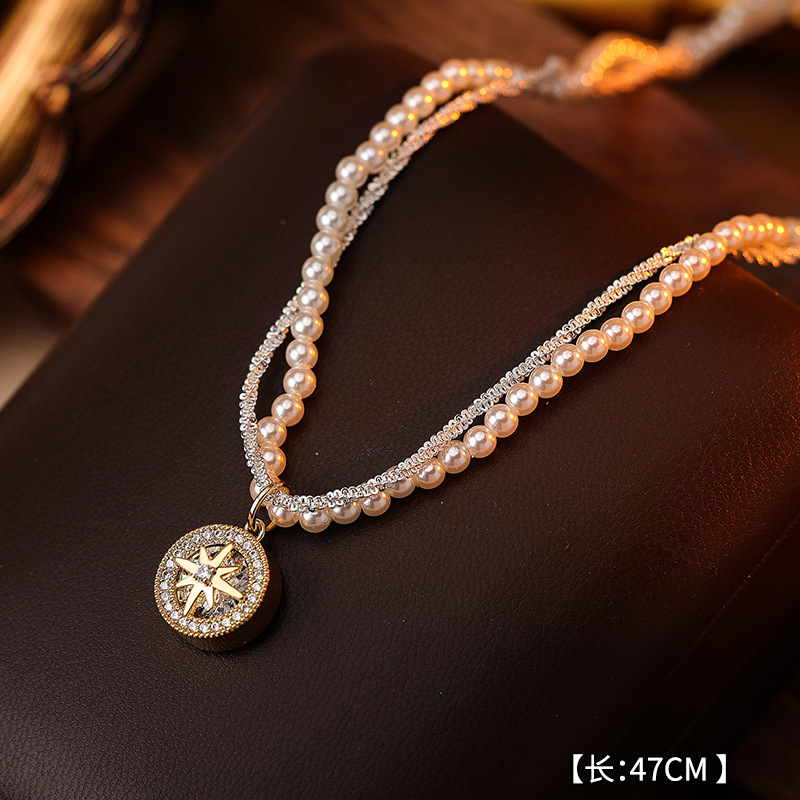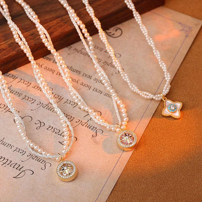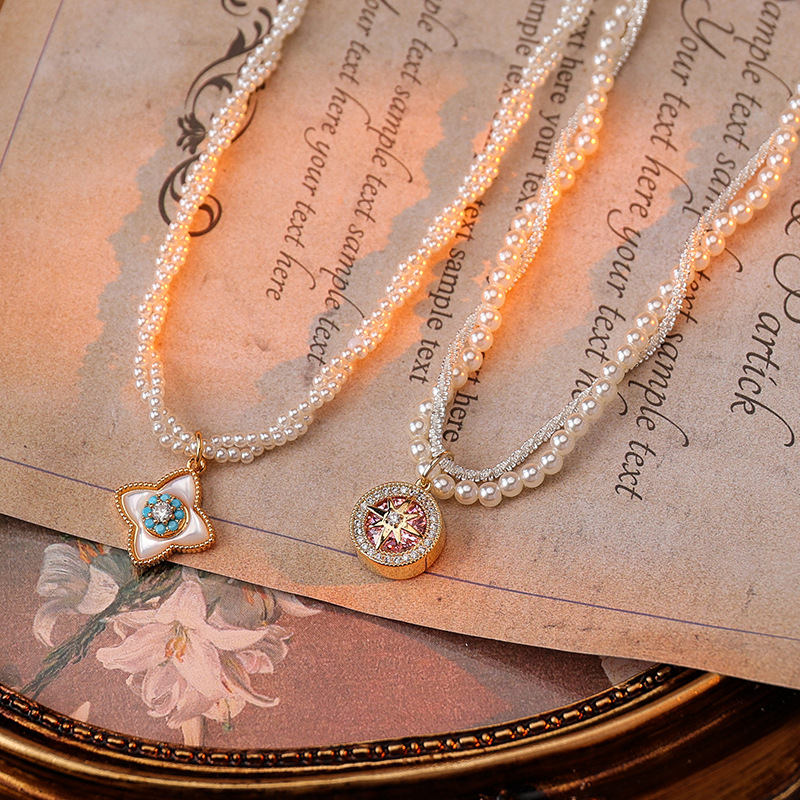 Color: Double-layered wrapped beads—18k eight-pointed star white diamond pendant