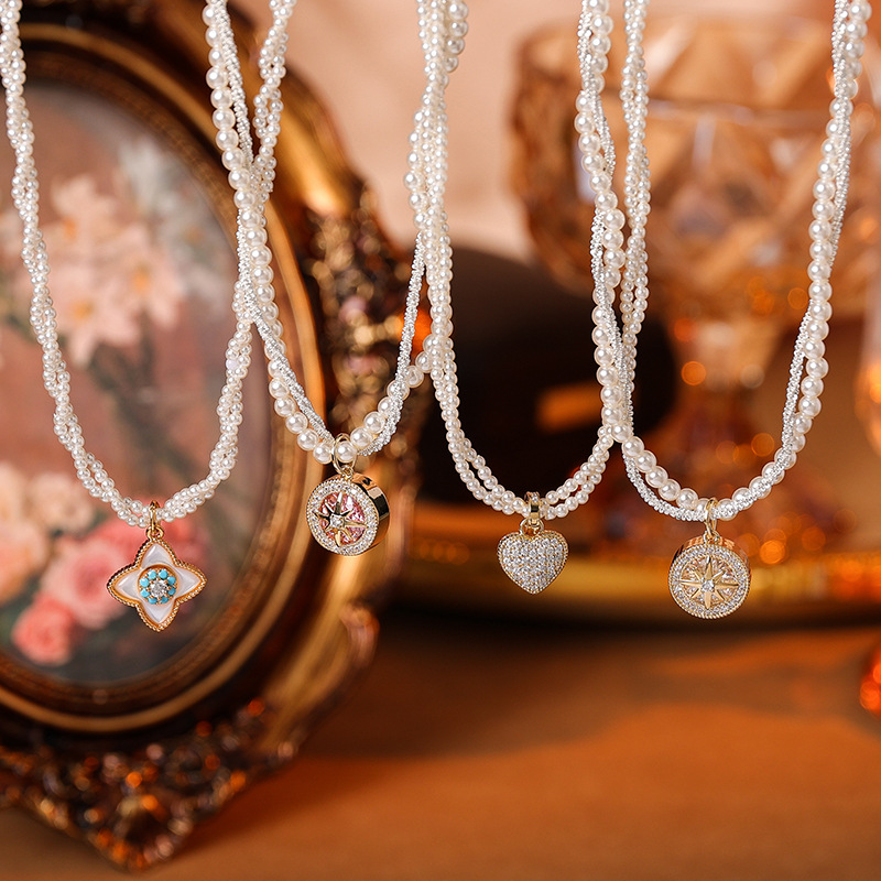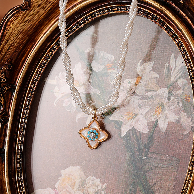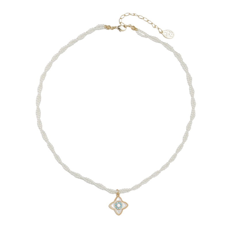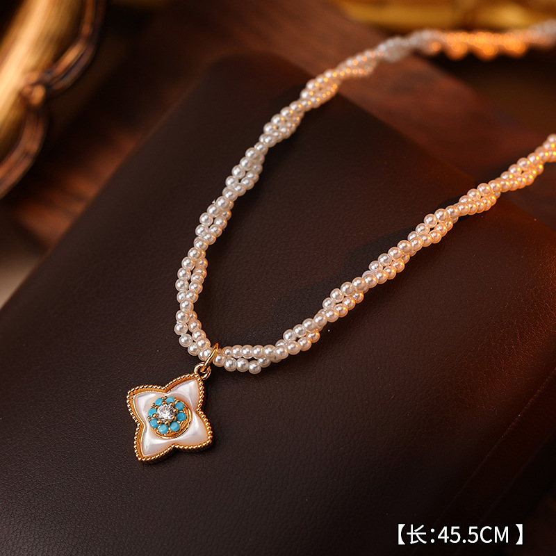 Color: Double-layered wrapped beads—18k four-leaf clover shell pendant