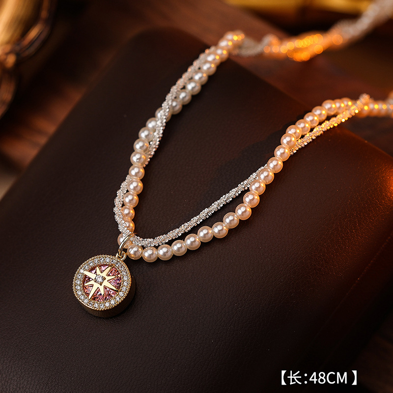 Color: Double-layered wrapped beads—18k eight-pointed star pink diamond pendant