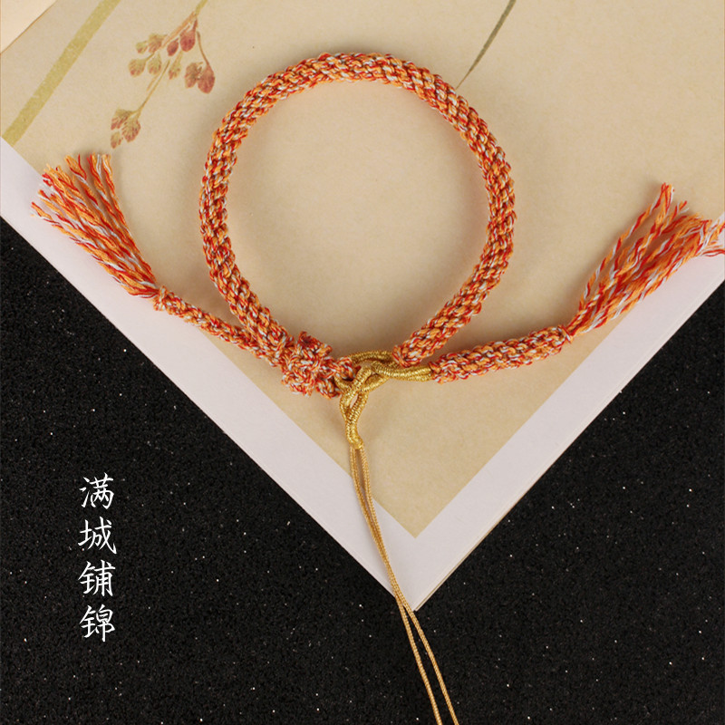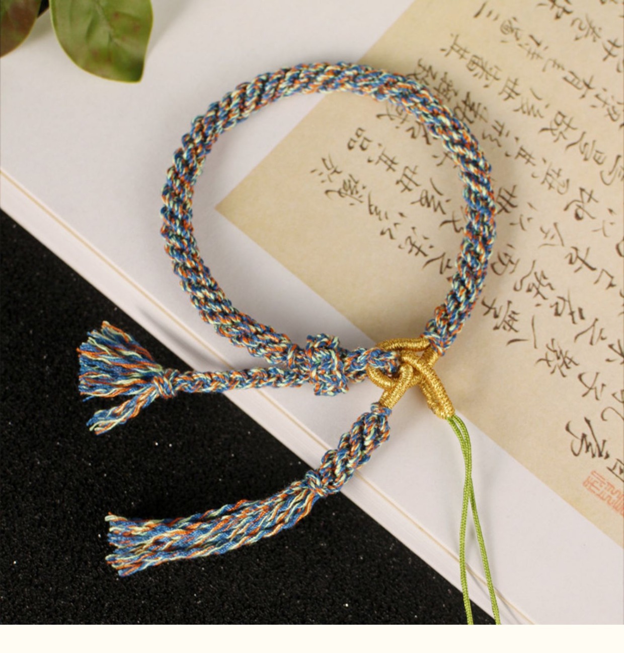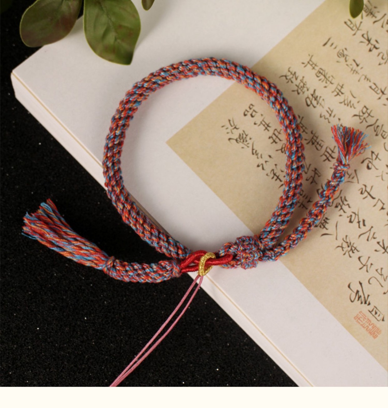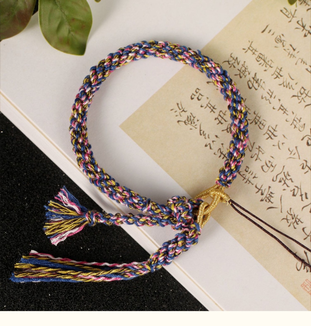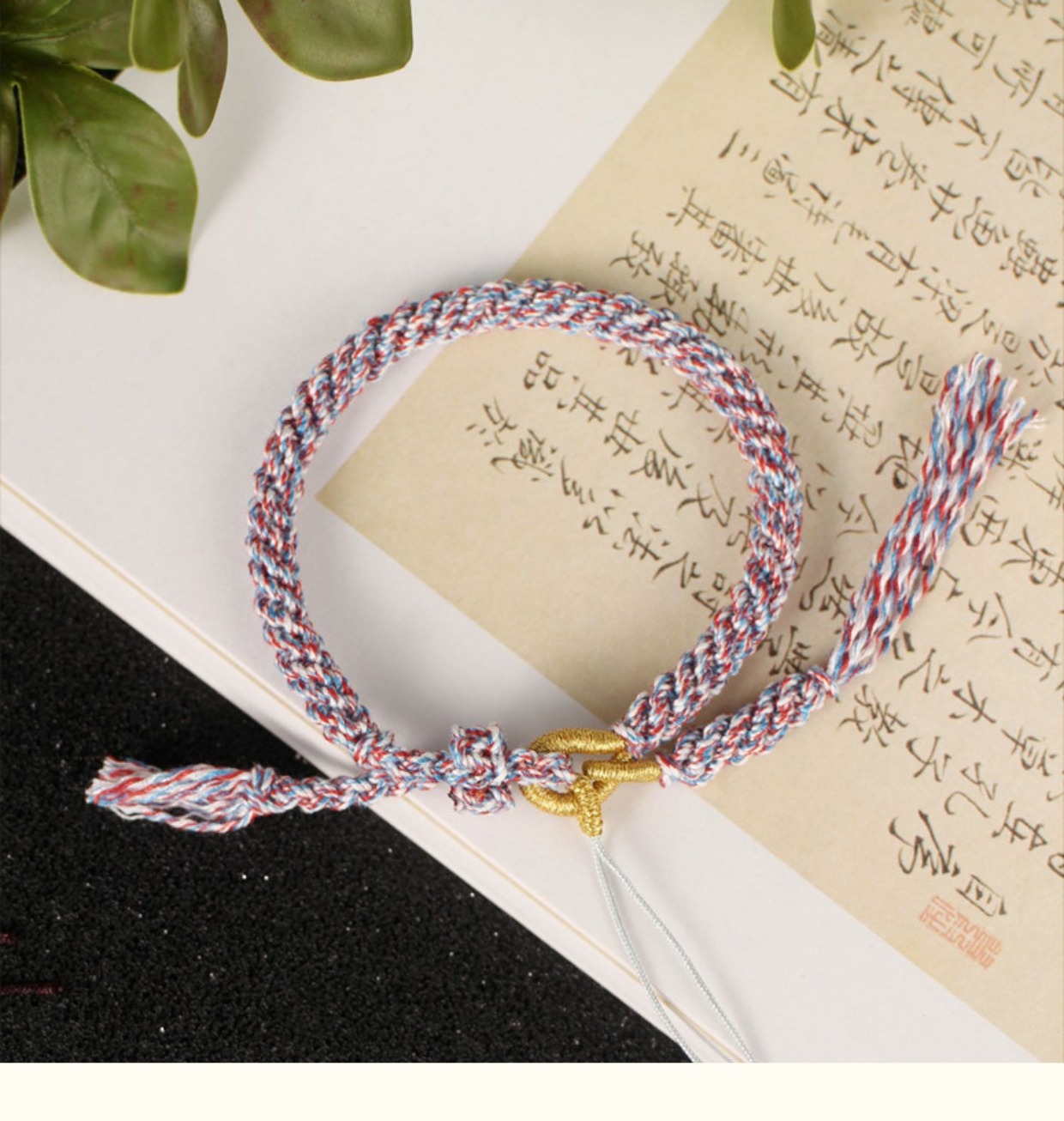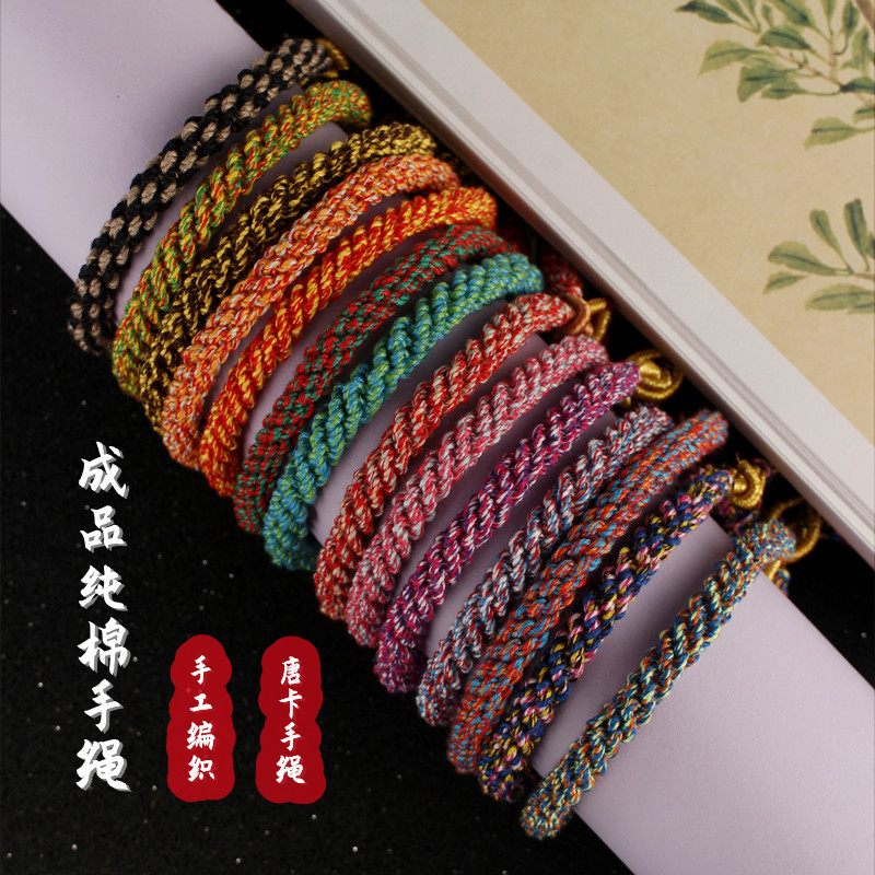 Xizang-Style Hand-Woven Pure Cotton Small Thangka Pendant Bracelet, Handmade Rope Suitable for Hanging Jade Safety Buckle and Jade Beads