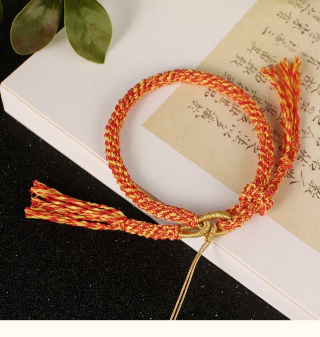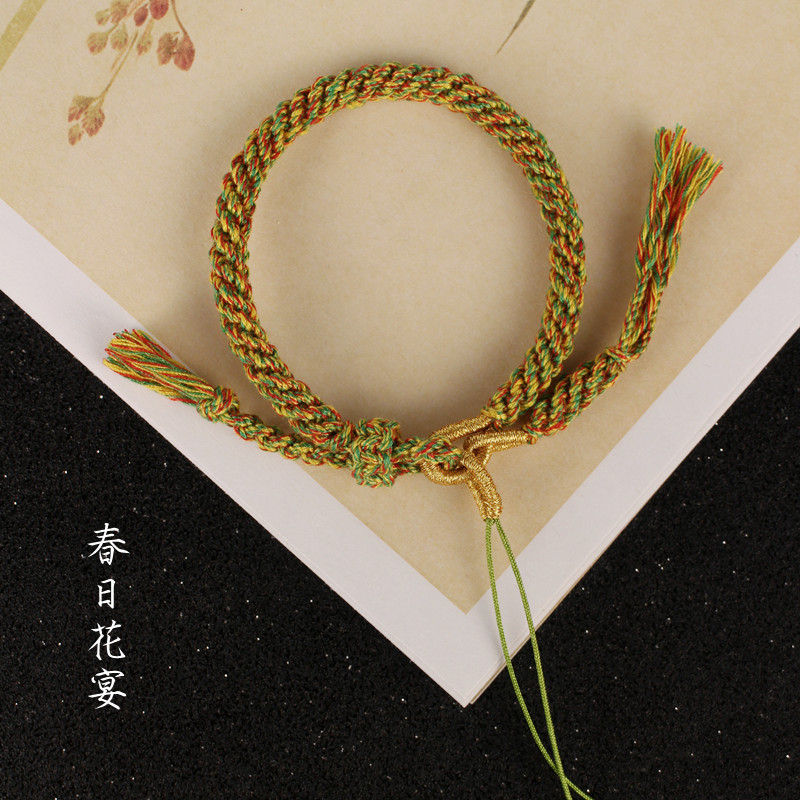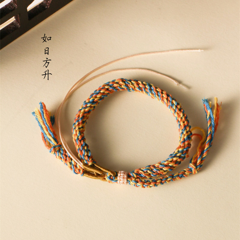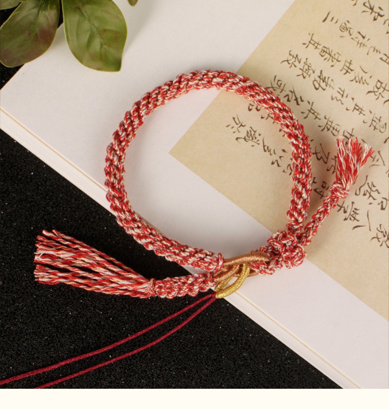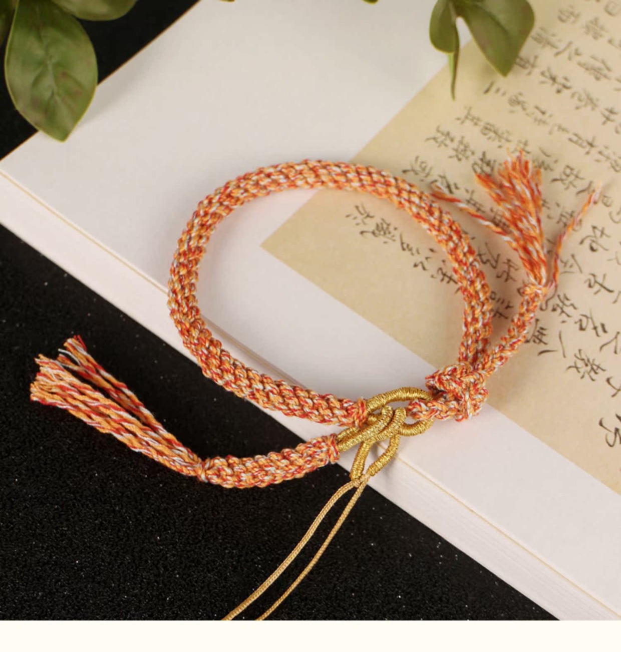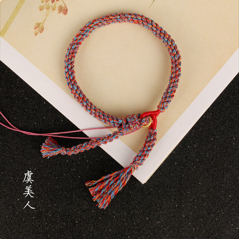 Xizang-Style Hand-Woven Pure Cotton Small Thangka Pendant Bracelet, Handmade Rope Suitable for Hanging Jade Safety Buckle and Jade Beads