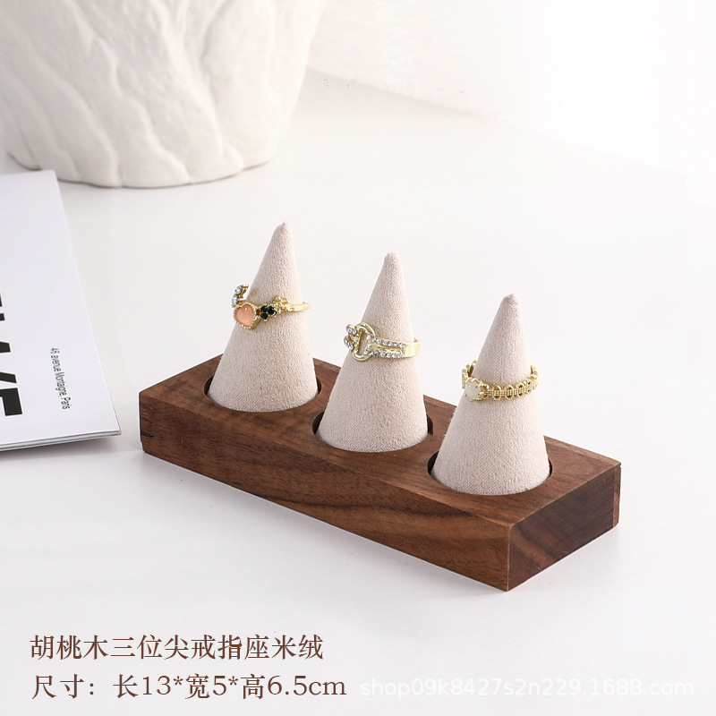 Color: Walnut rice velvet three-position pointed corner ring holder