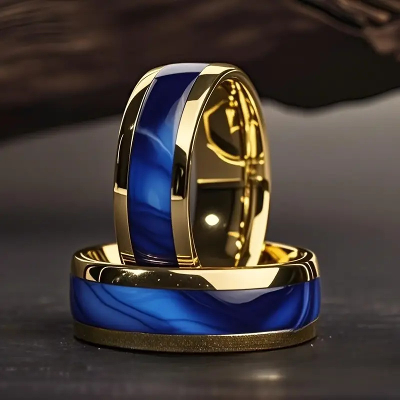 Gold Ring with Blue Background, Business Men's Ring, Anniversary Gift for Him, Gold Spherical Blue Turquoise