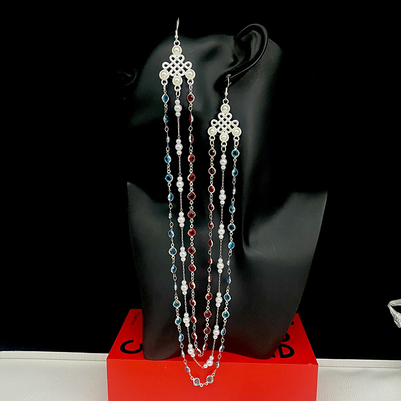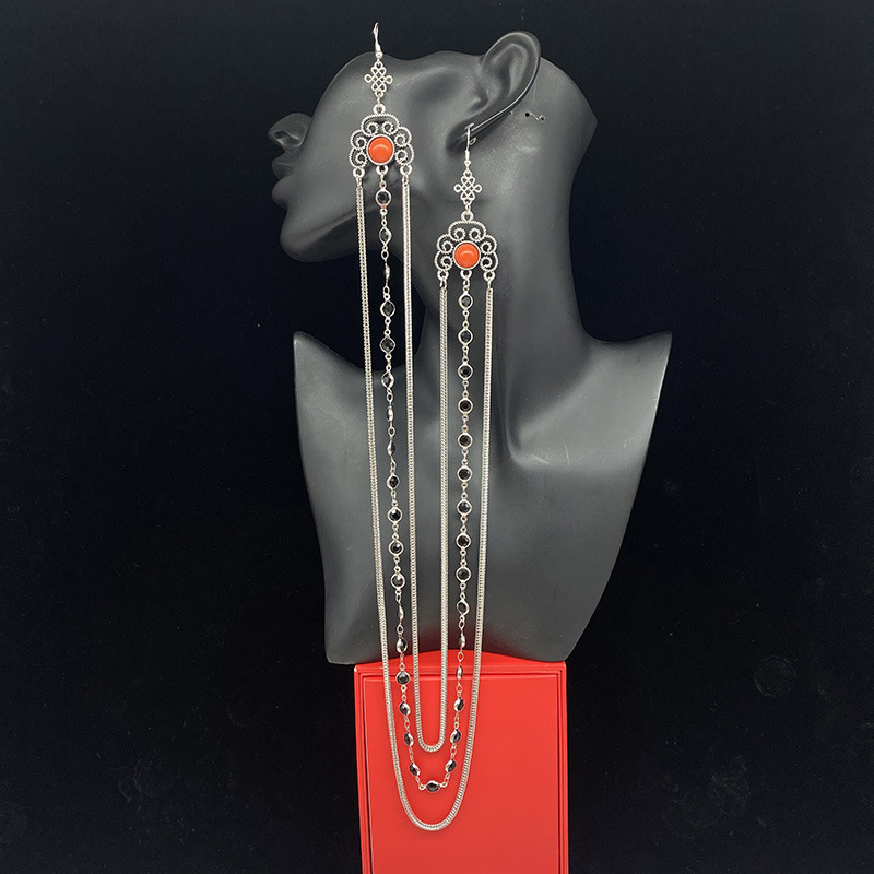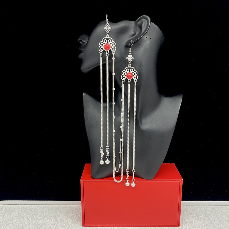 Mongolian Earrings Elements Turquoise Features Ethnic Style Earrings Tassel Jewelry Earrings Mongolian Robe Accessories Hanging Ornaments