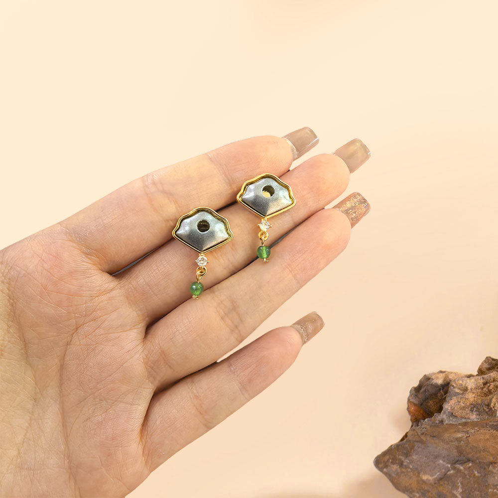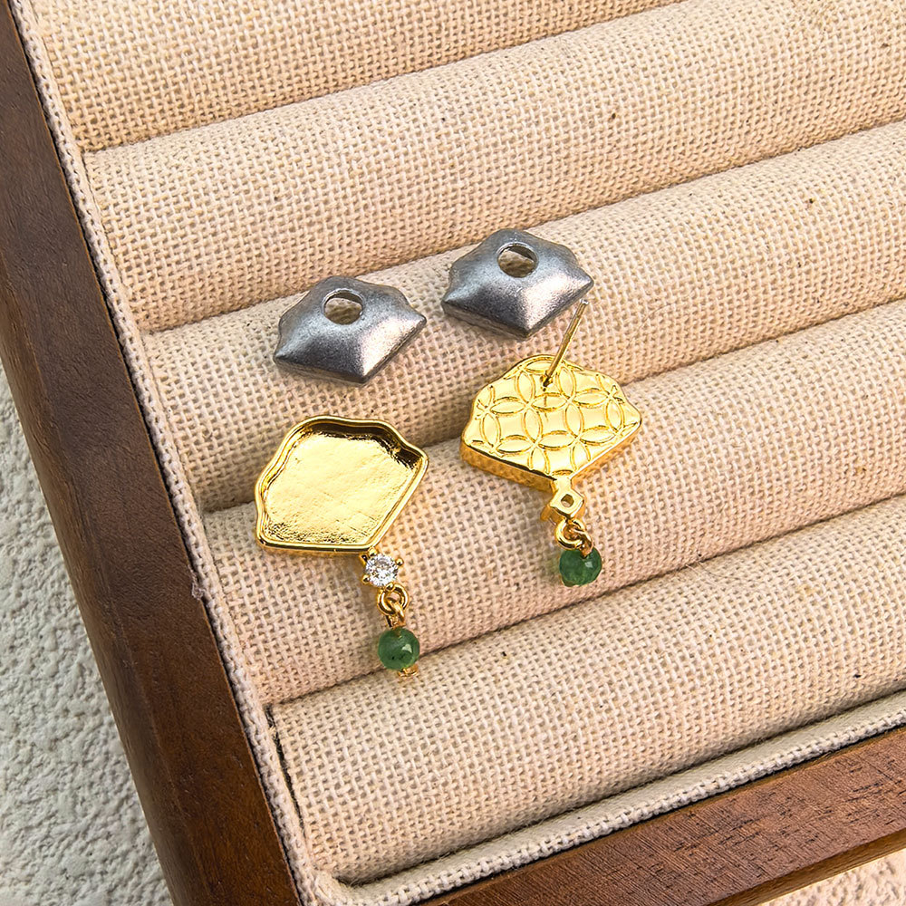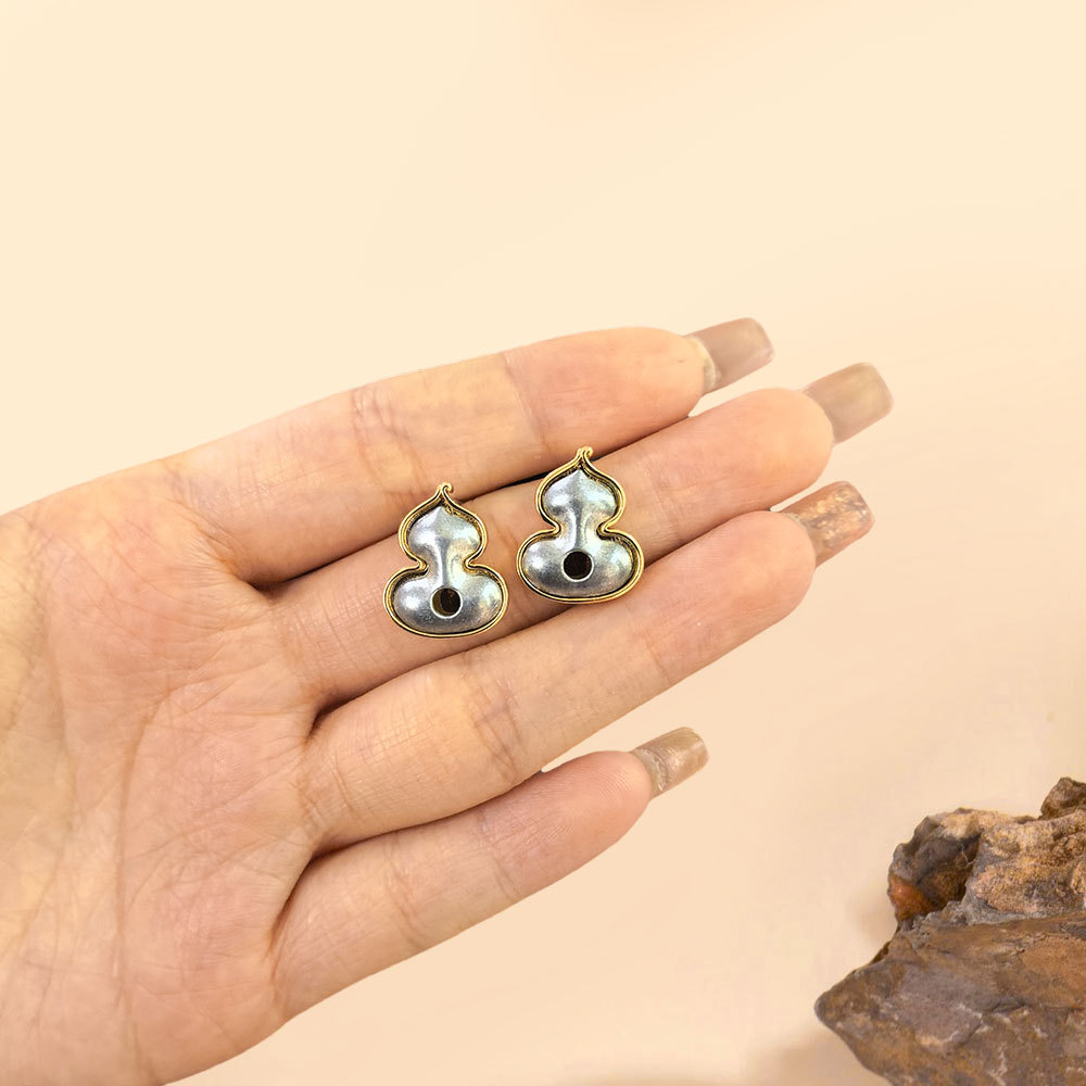 Copper plated 18K real gold color retaining earrings s925 Song Jin handmade DIY homemade gourd earrings with cover bottom embryo wholesale