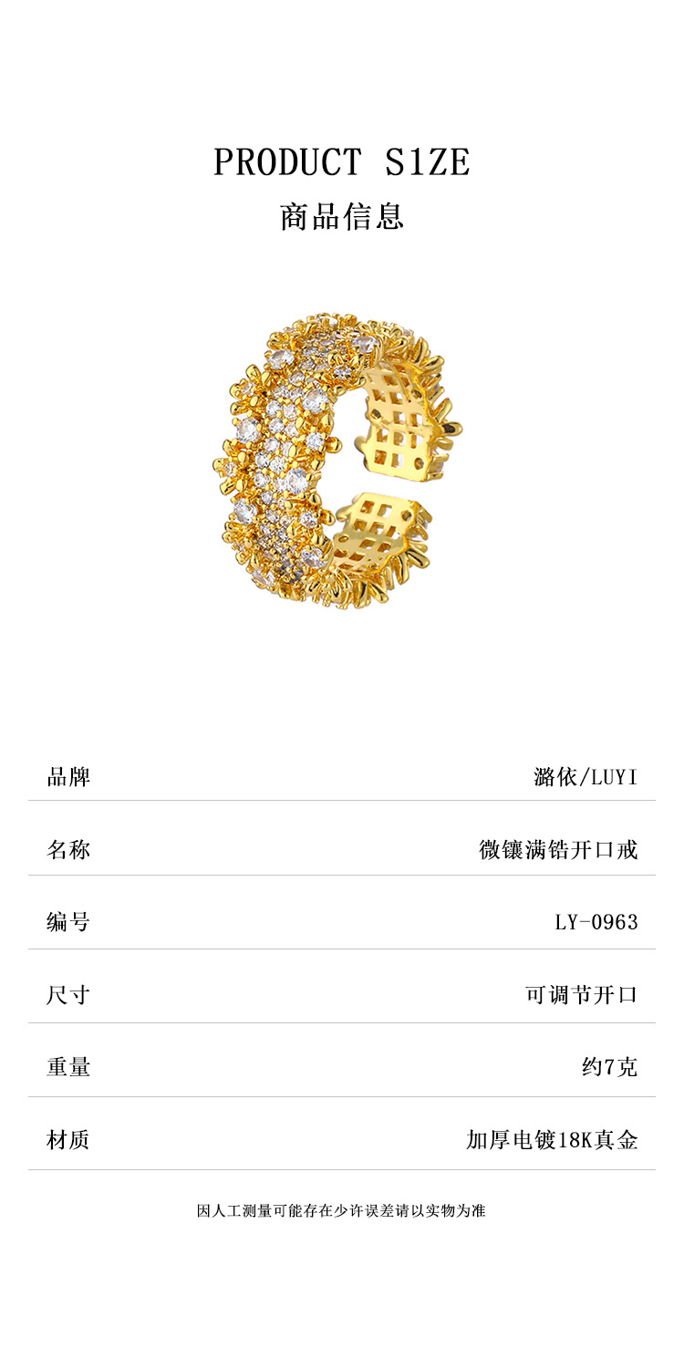 Super Flash Star Zircon Ring Women's Niche Design Fashion Simple Elegant Light Luxury High-end Open Finger Ring