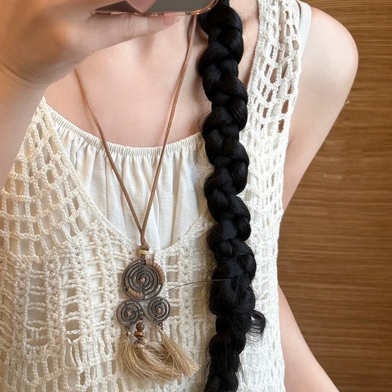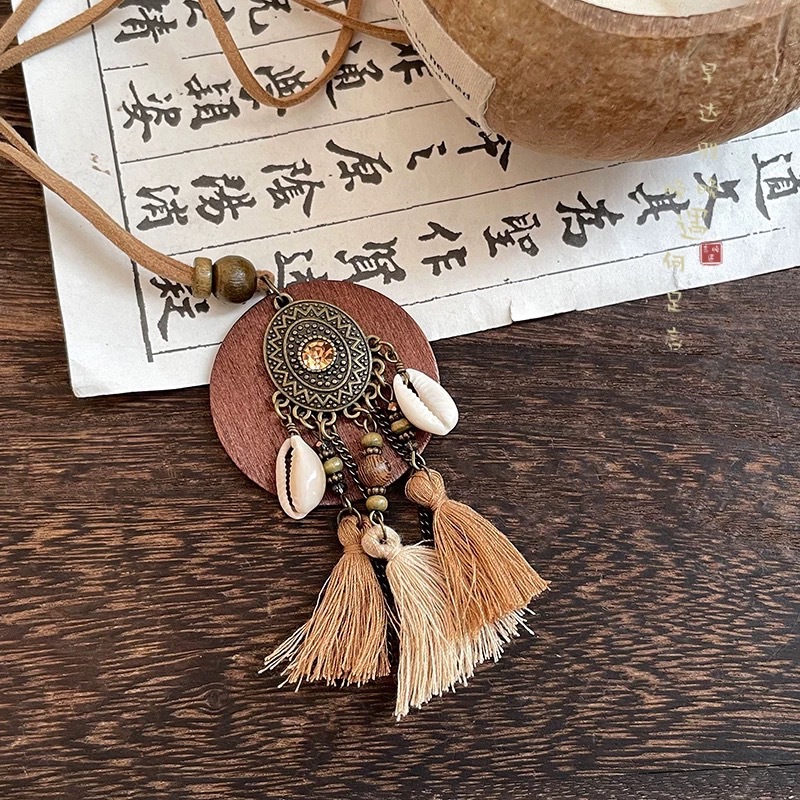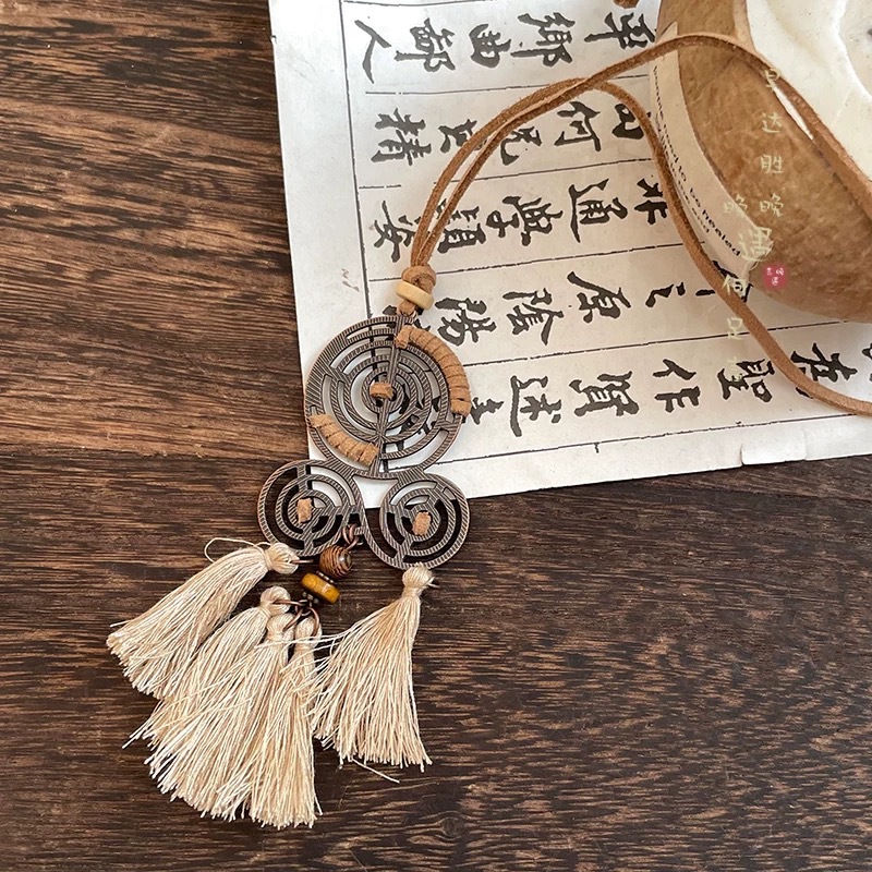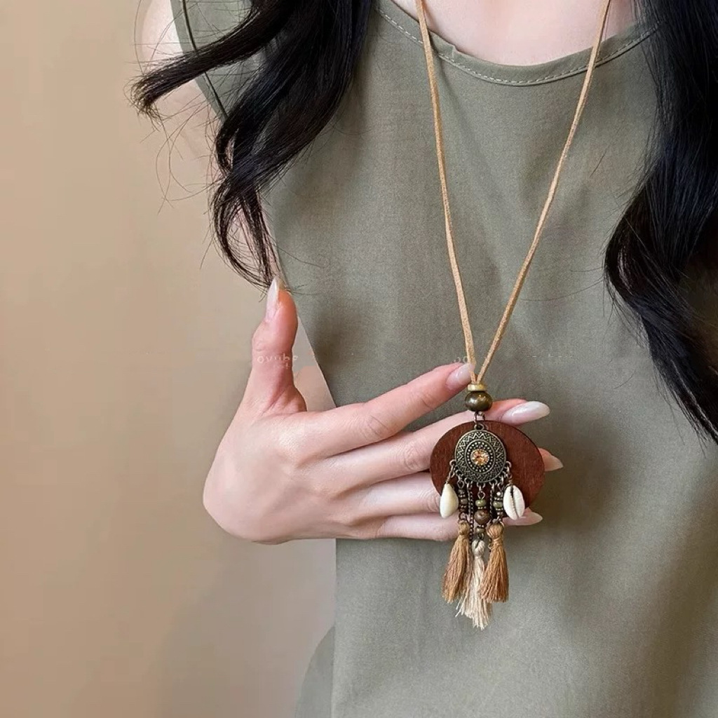Color: Mixed green wire wrapped tassel necklace-x5273c