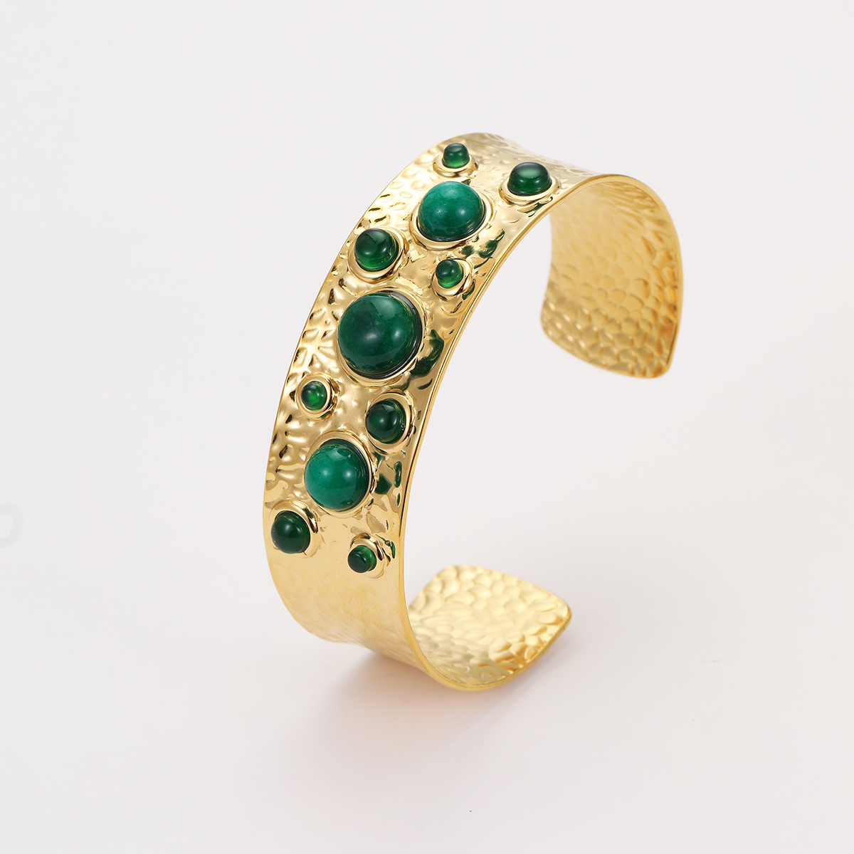 Cross-border Hot Sale French Retro Middle Titanium Steel Bracelet Colorful Natural Stone Niche Design Stainless Steel Open Bracelet