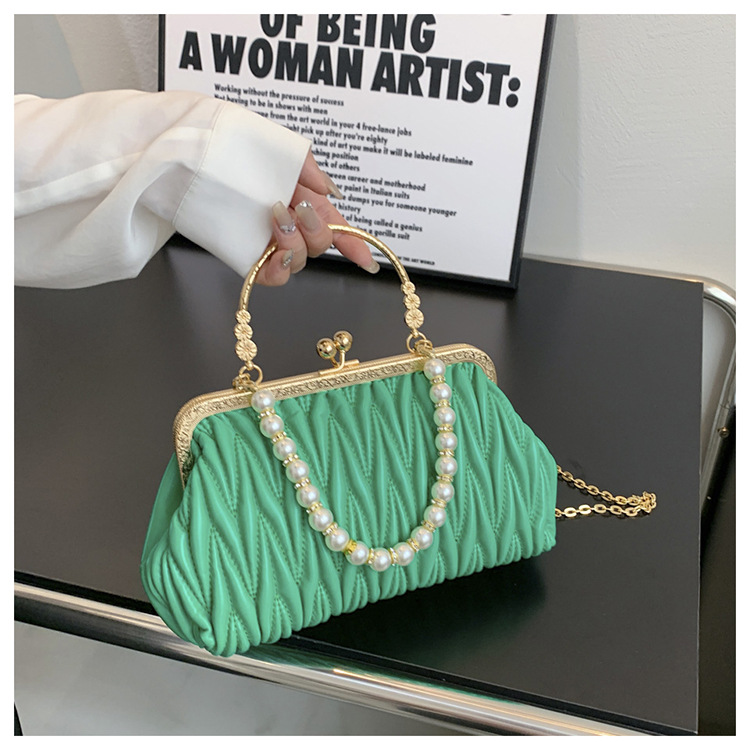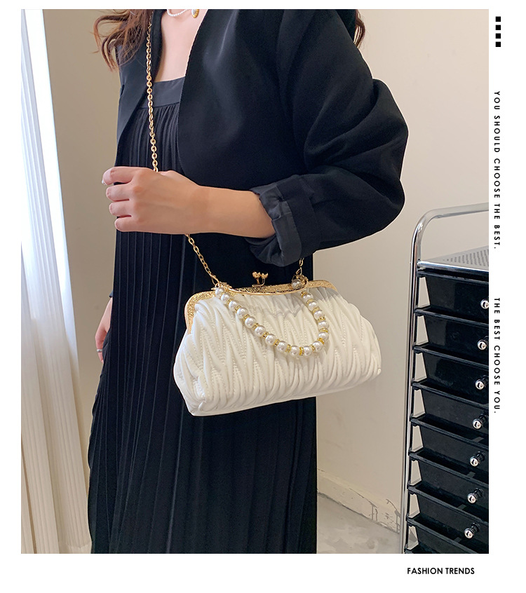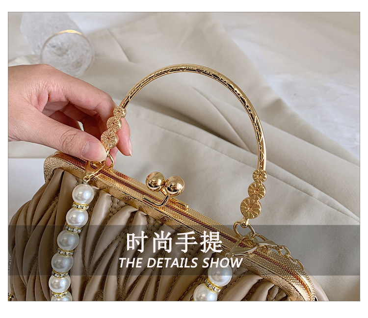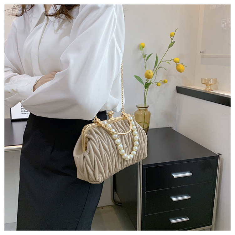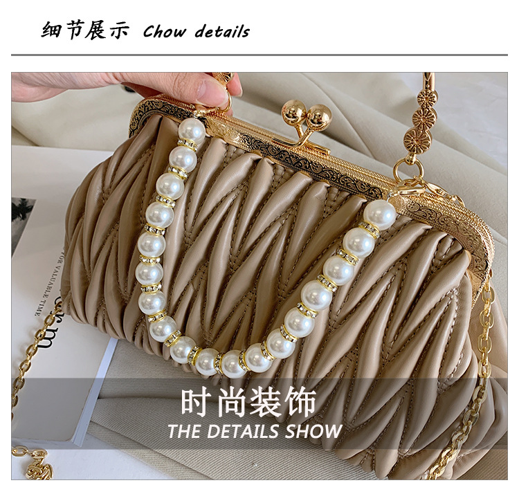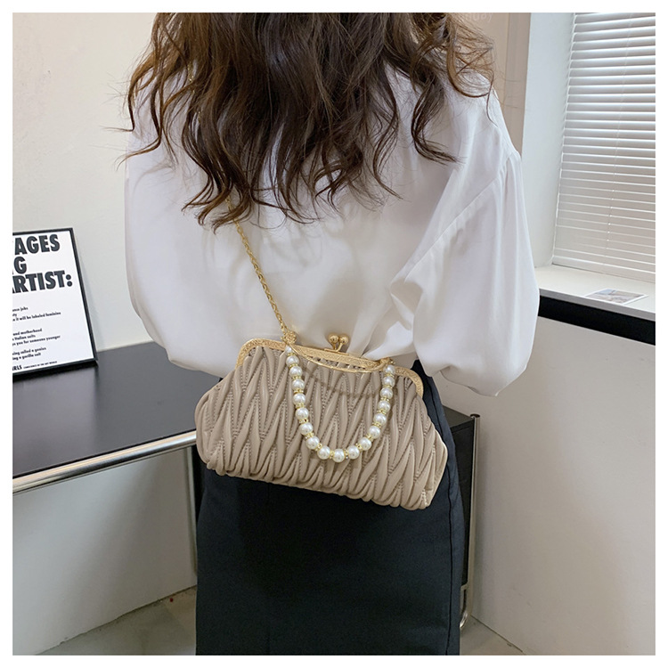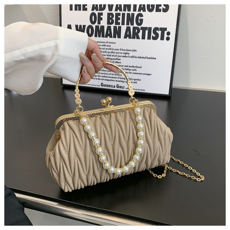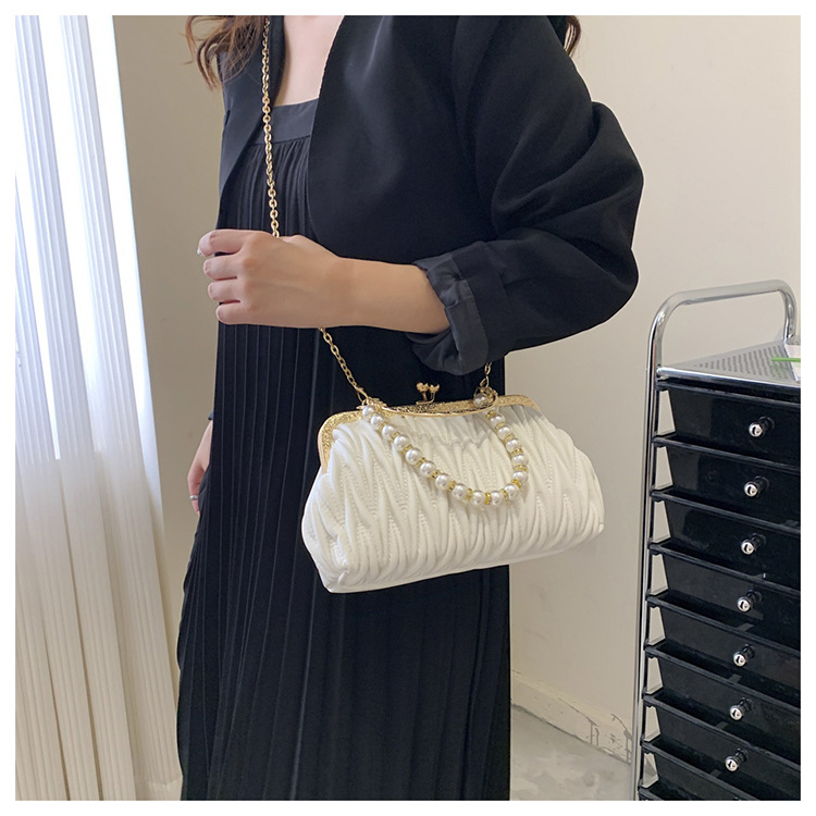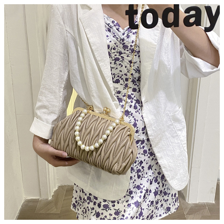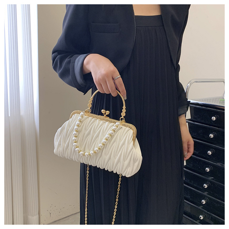 Bags Women's Dinner Pearl Portable Pleated Clip Shell Bag 2025 New Chain Shoulder Embroidery Crossbody Bag