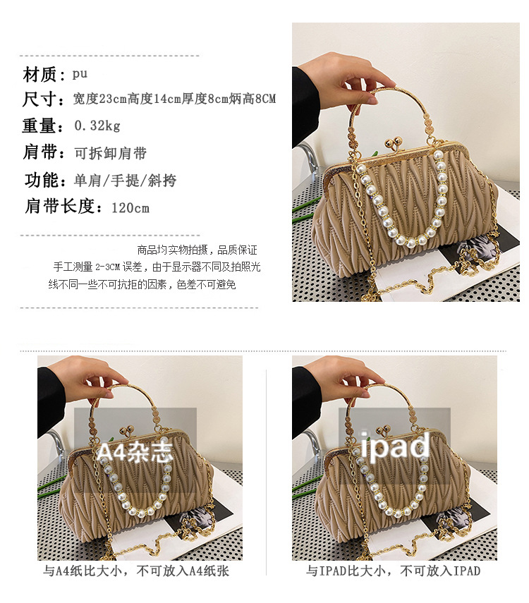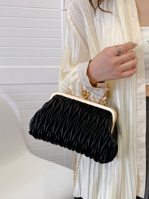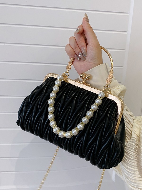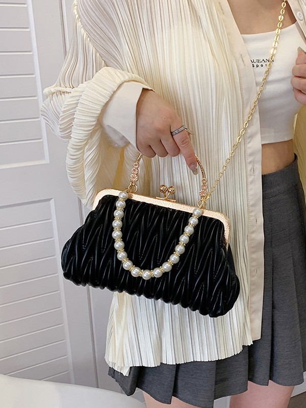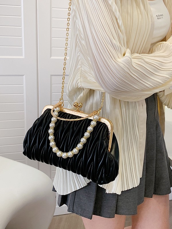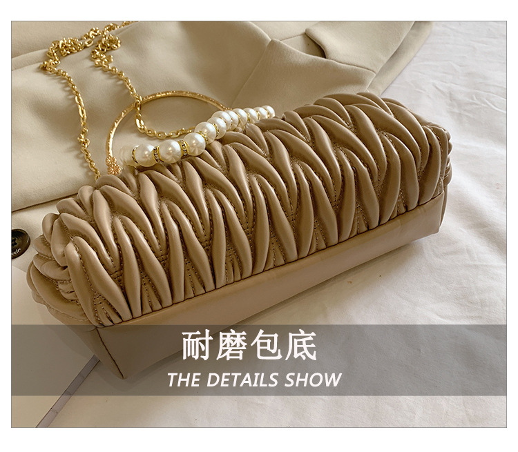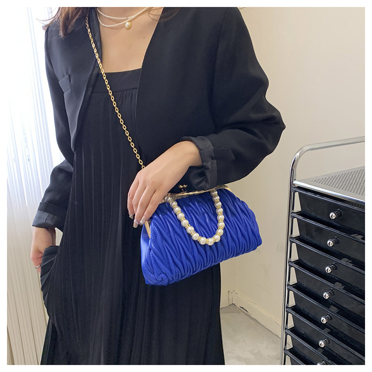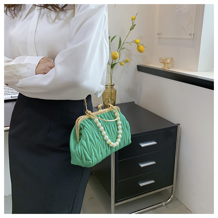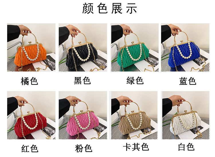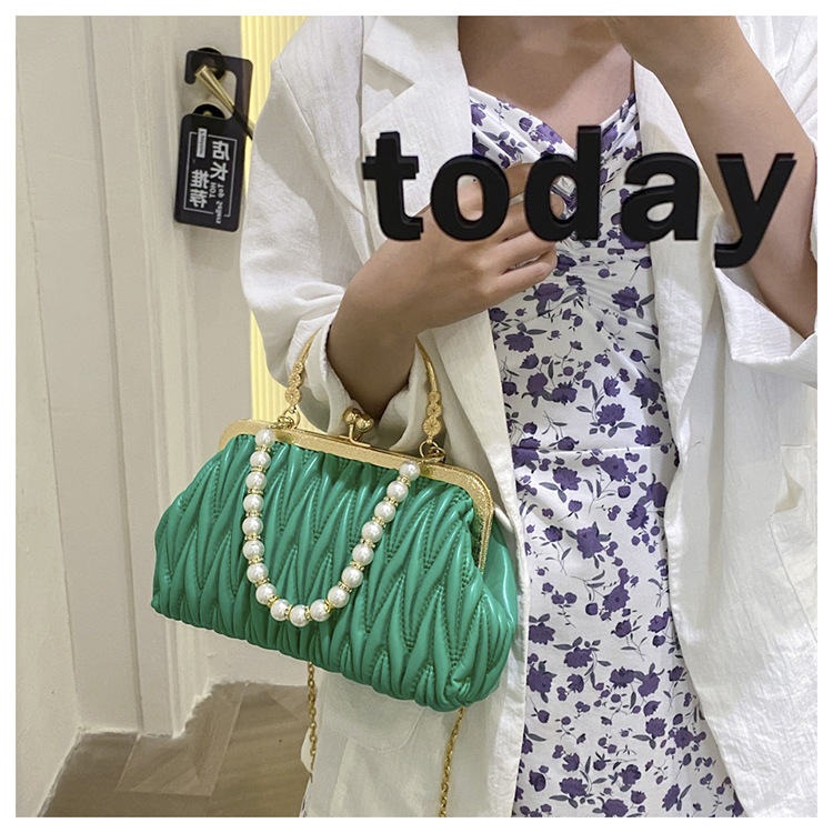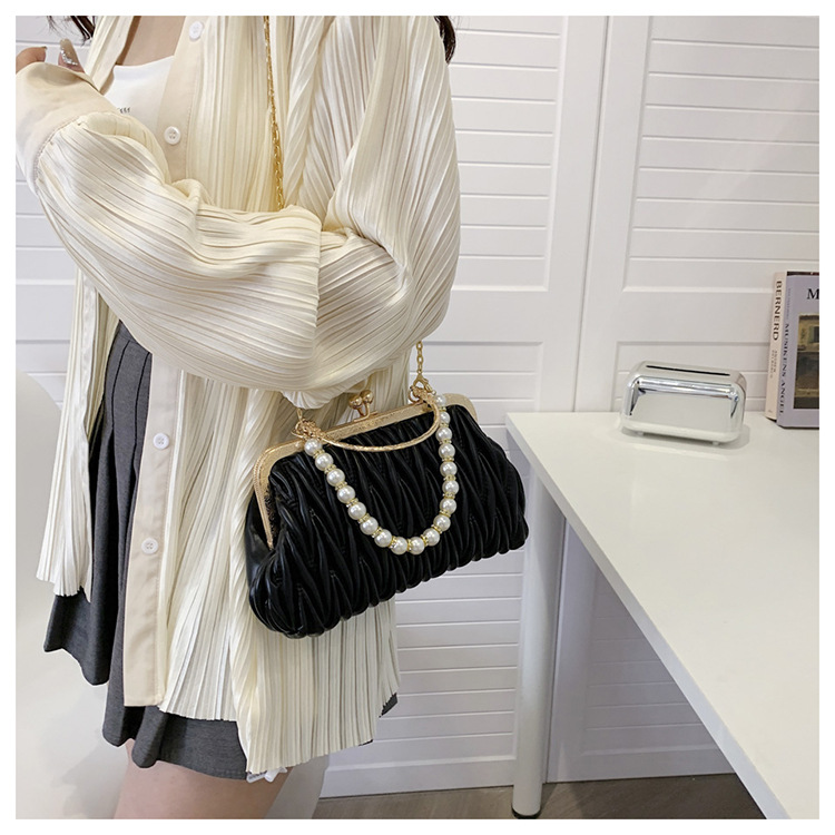 Bags Women's Dinner Pearl Portable Pleated Clip Shell Bag 2025 New Chain Shoulder Embroidery Crossbody Bag