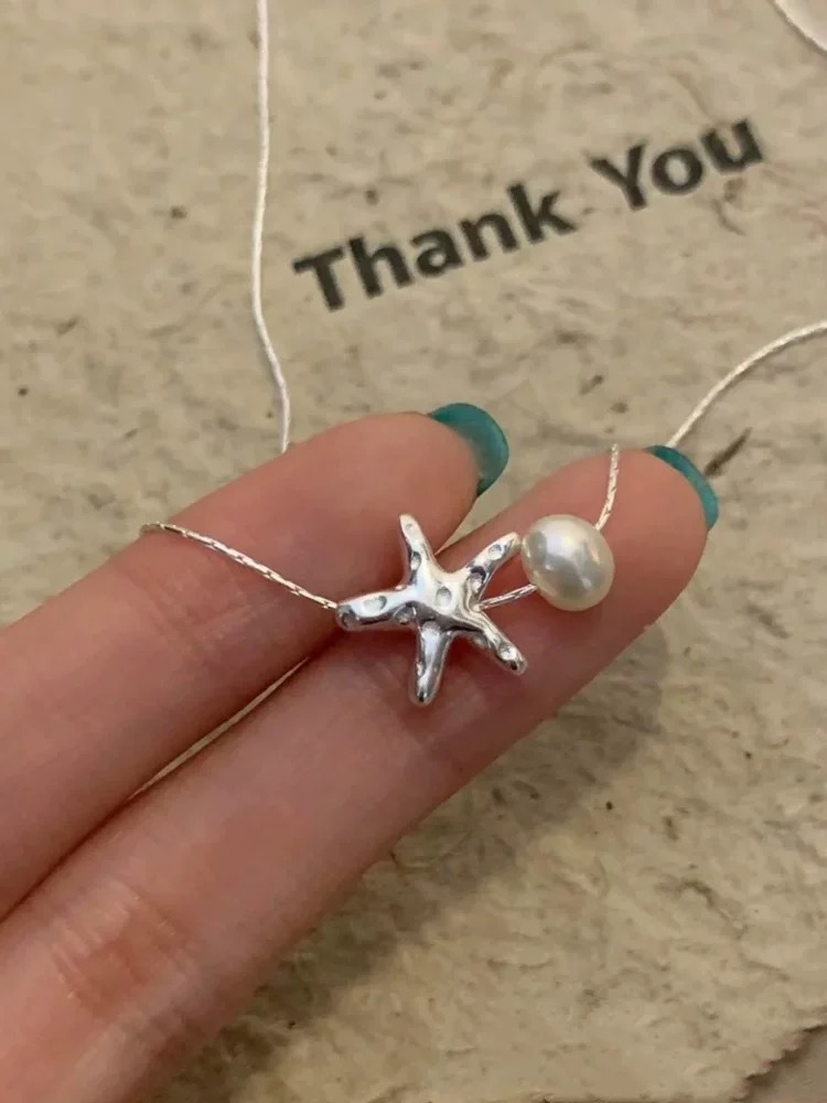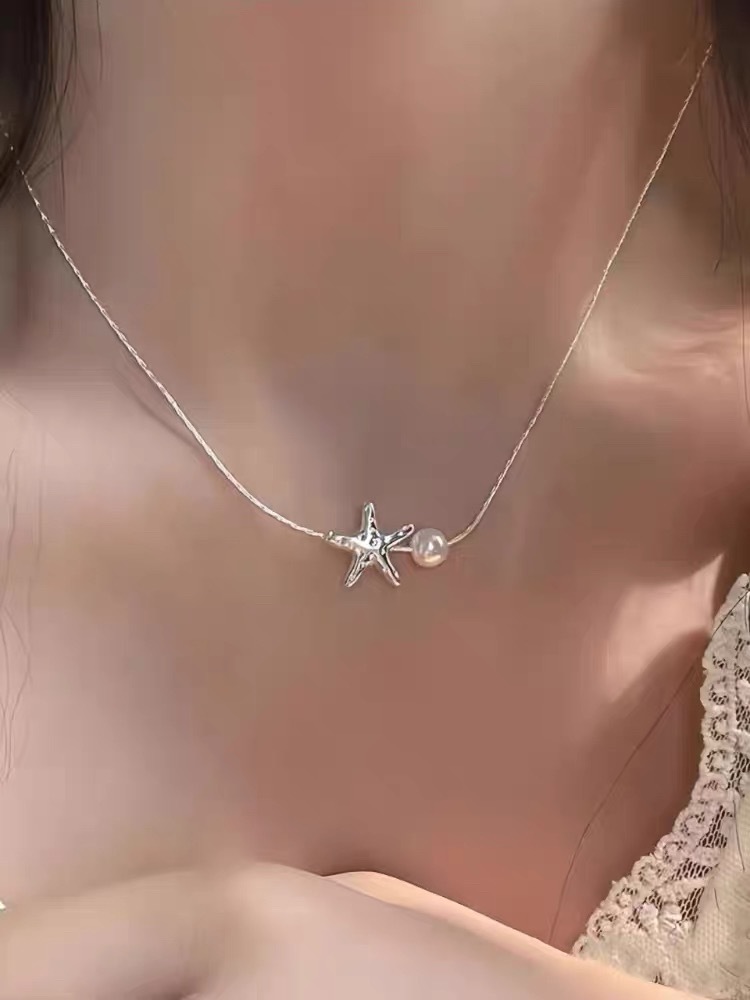 Simple Starfish Pearl Necklace Female Niche Unique Design Fashion Clavicle Chain Light Luxury Elegant Exquisite Star Accessories