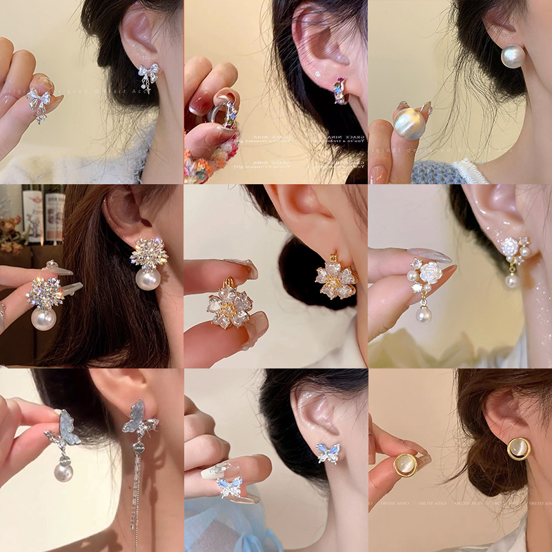 Color: Micro-embedded butterfly earring set-a1716 silver