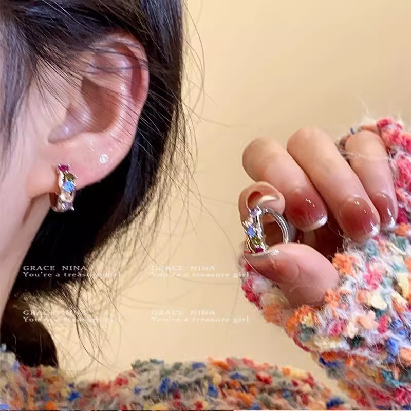 Color: Micro-embedded silver gold stud earrings-a1848 gold