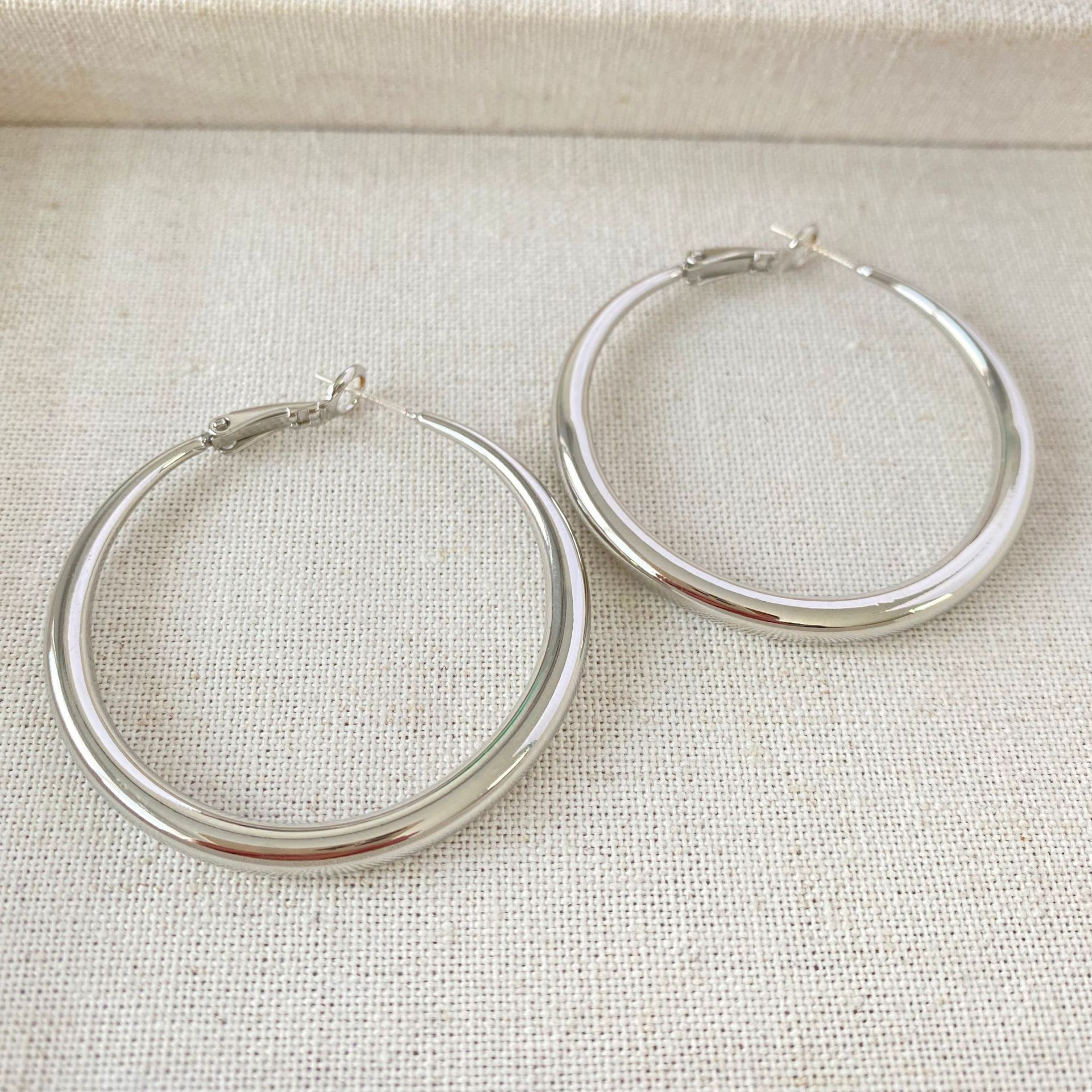 European and American New Classic Simple Plain Hoop Earrings with a Glossy Surface, Light Luxury, High-End Feel, Versatile Silver Needle Hoop Earrings for Women