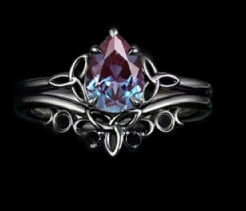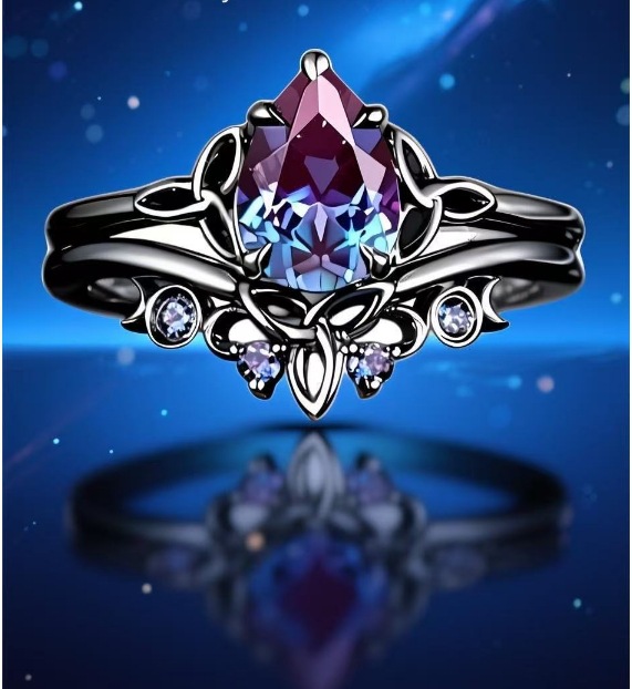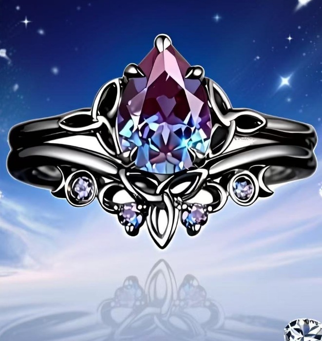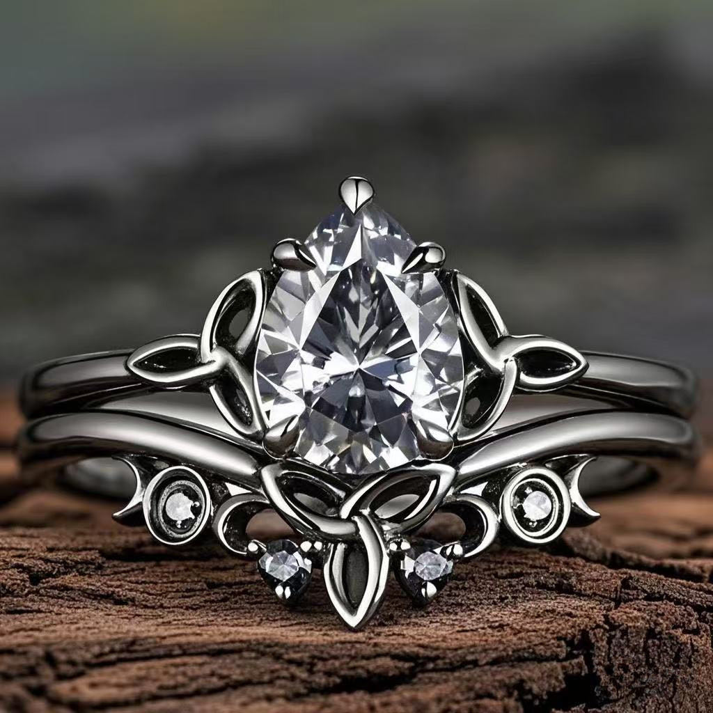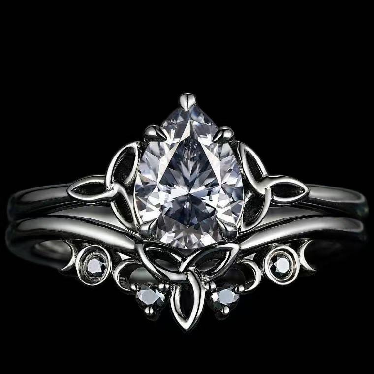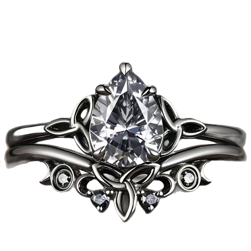 2 Piece Set Water Drop Zircon Women's Gun Black Ring Cross-border Independent Station Hot Sale Simple Fashion Exquisite Ring