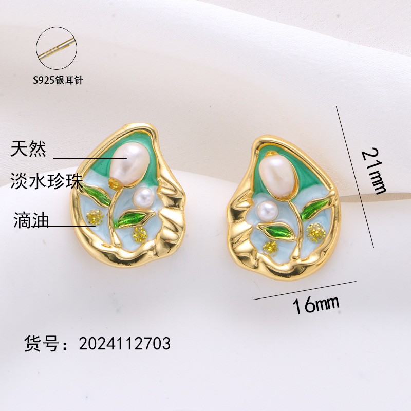 Color: Pink and green earrings (925 silver needle)