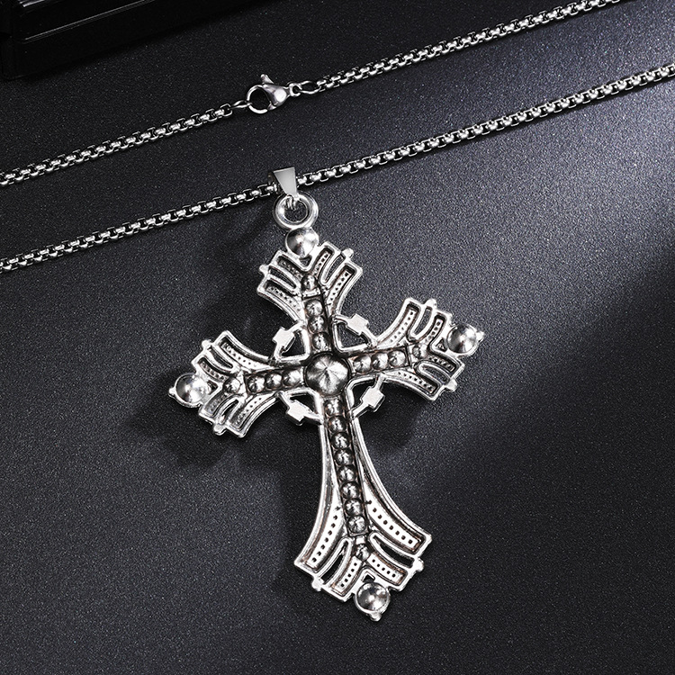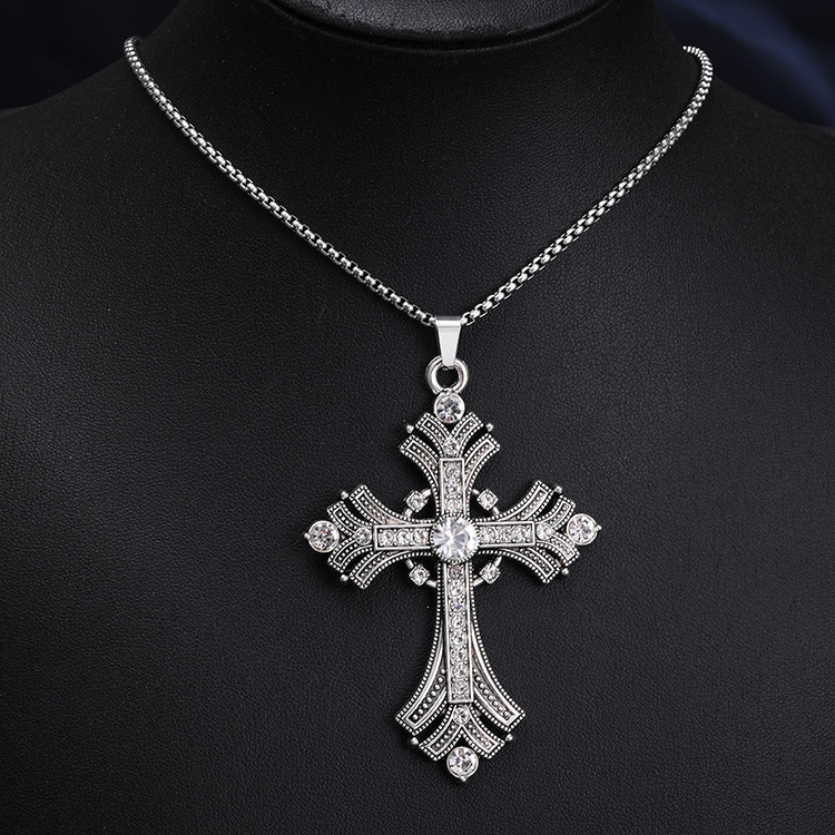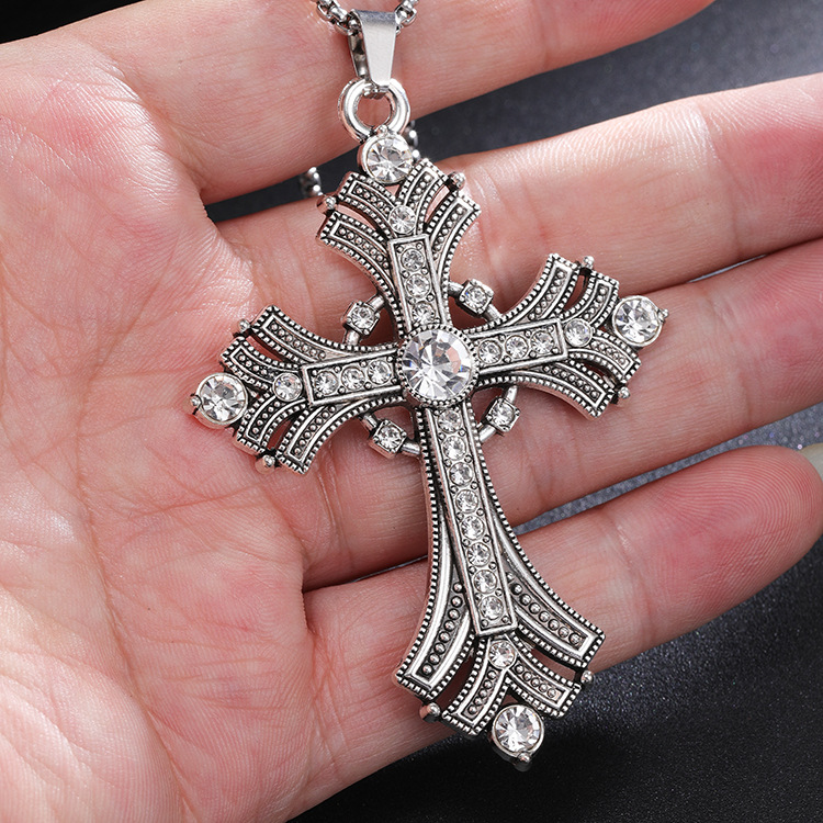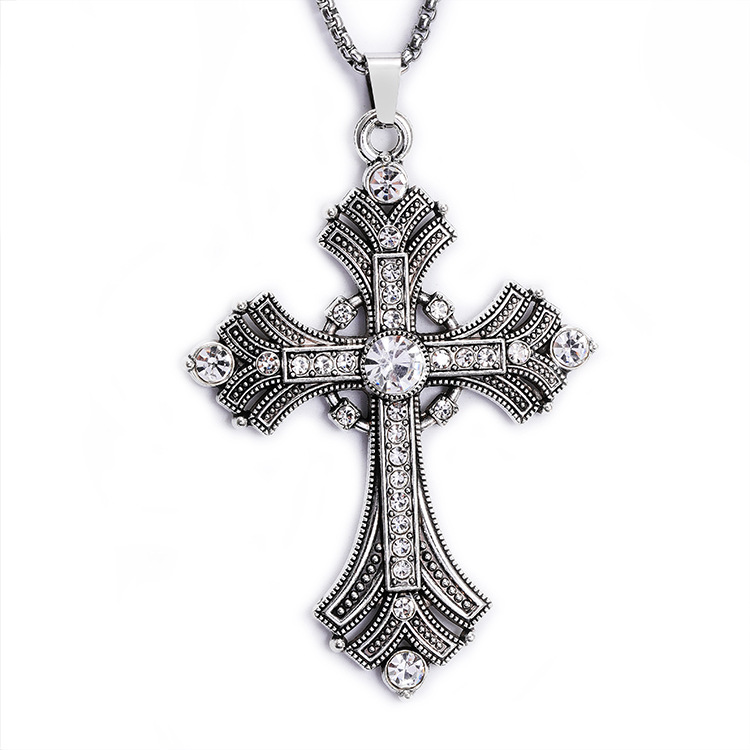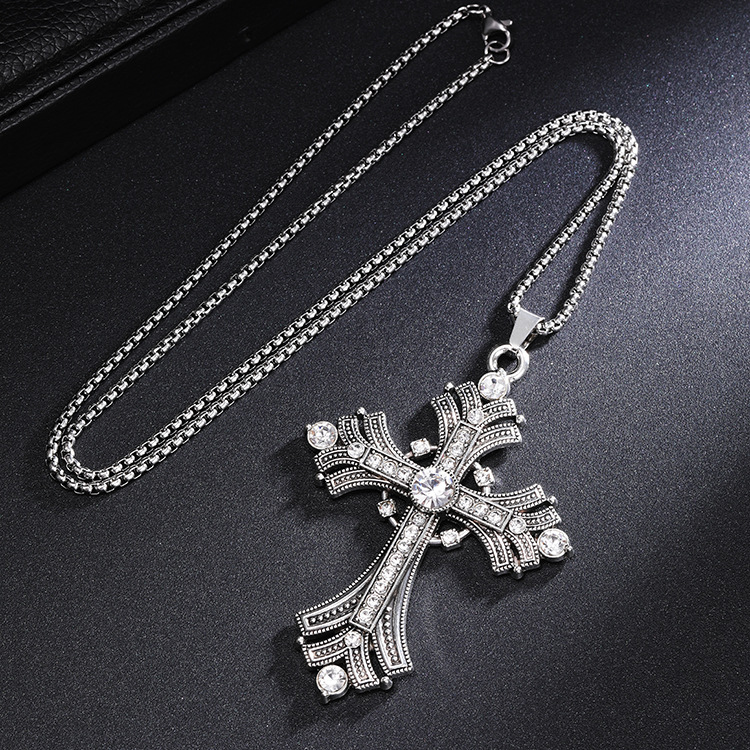 Cross-border Europe and America Hot-selling Diamond-encrusted Crowe Cross Pendant Necklace High-grade Light Luxury Niche Stainless Steel Woolen Chain