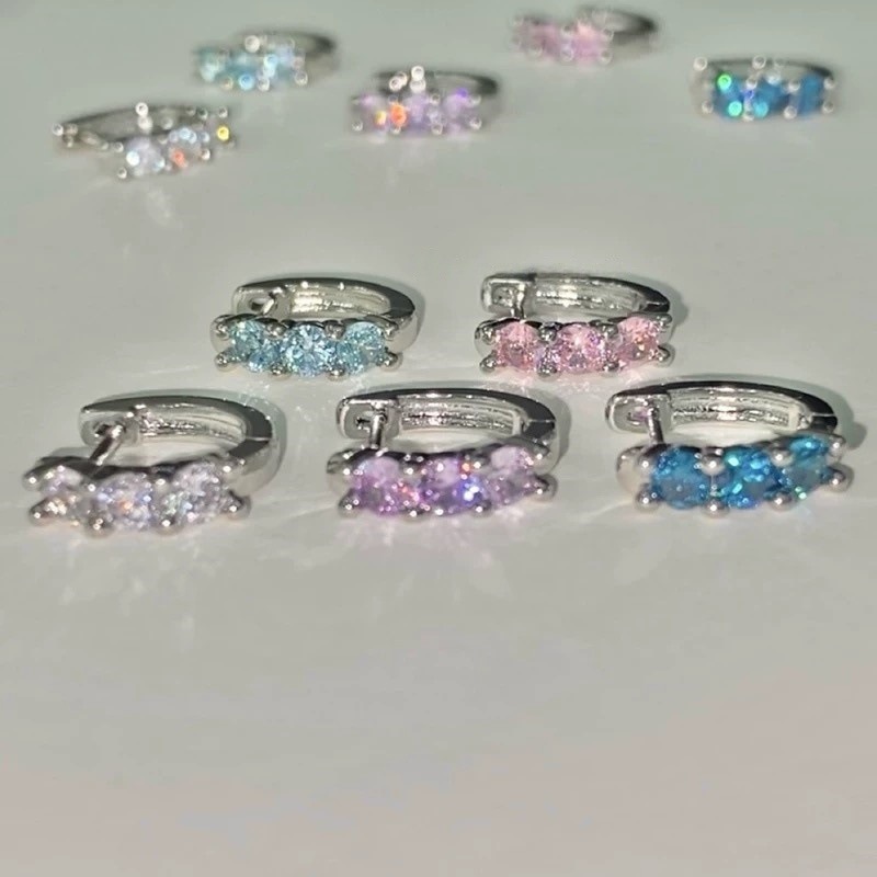 Simple Straight Needle Super Flash Diamond Ear Buckle Niche Ins Superior Sense Colorful Earrings Ear Ring Stacked Ear Jewelry