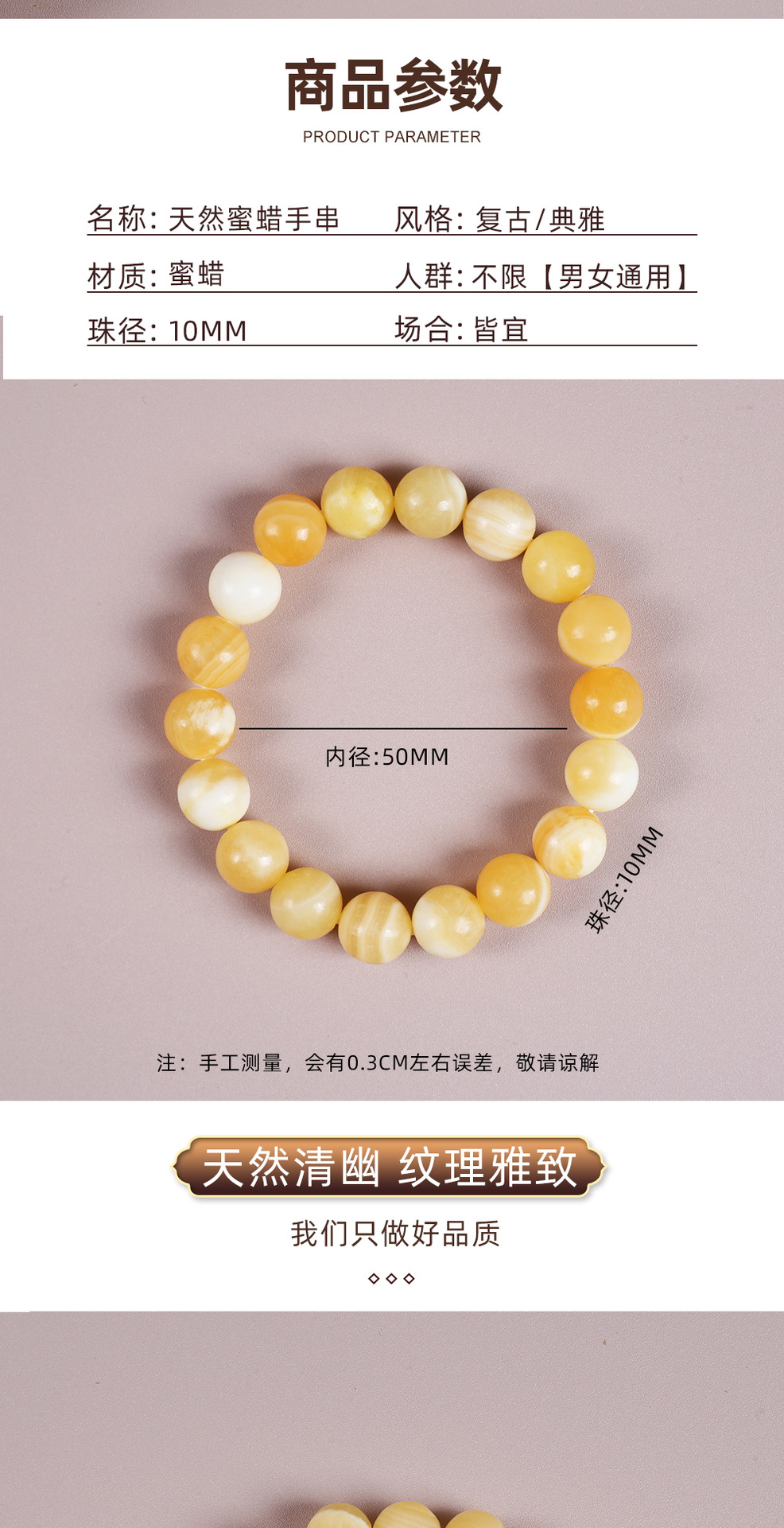 High-grade natural beeswax bracelets for men and women Russian Polo yellow and white flowers small round beads national style bracelet bracelet wholesale