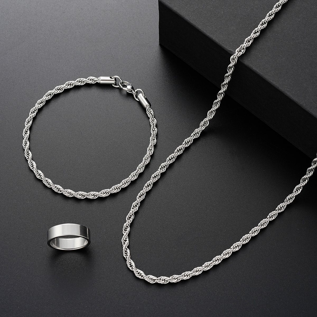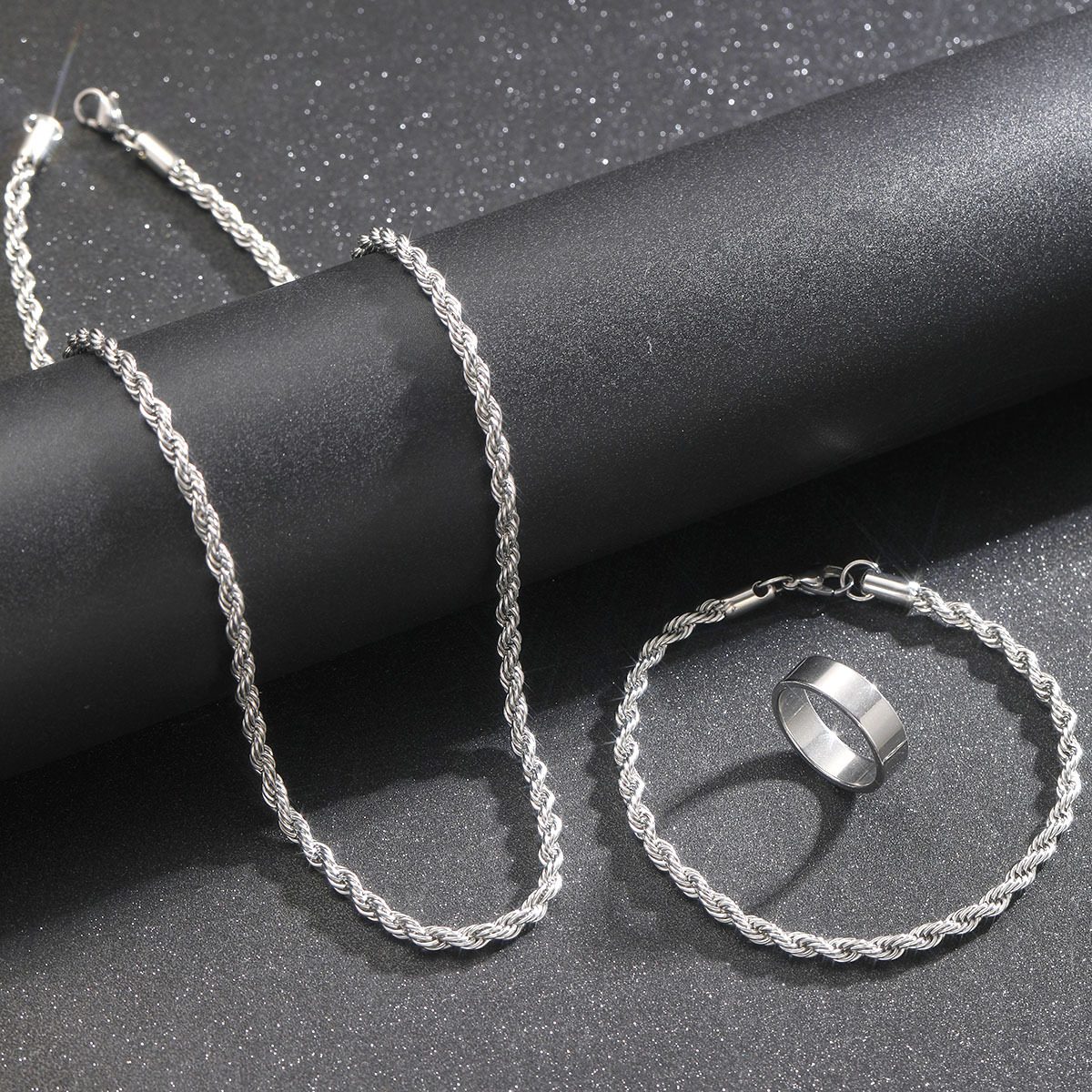 Fashion New European and American Cross-Border Aperture Ring Twist Bracelet Necklace Set Stainless Steel Women's Summer Necklace Wholesale