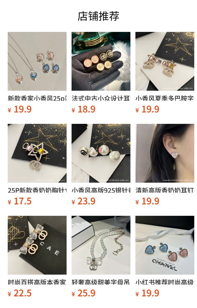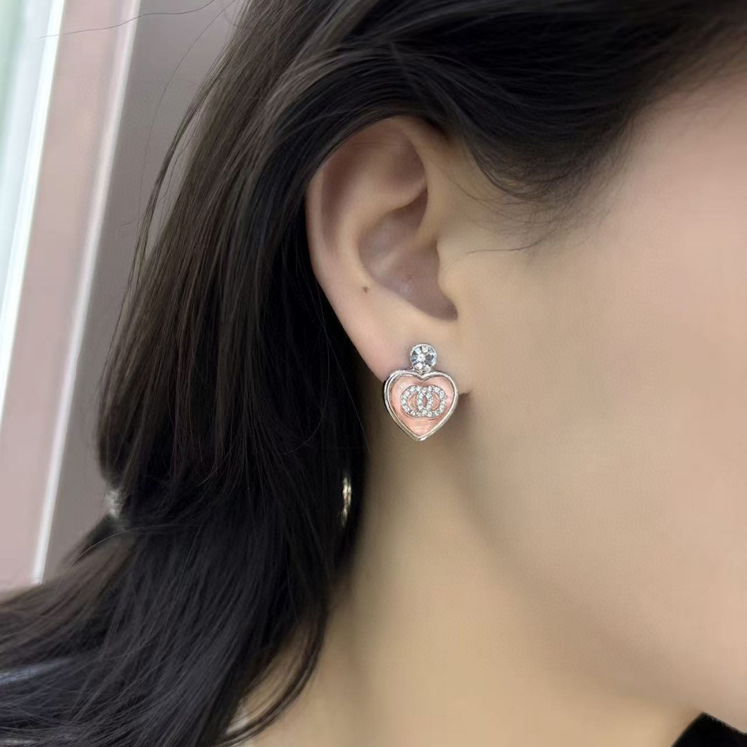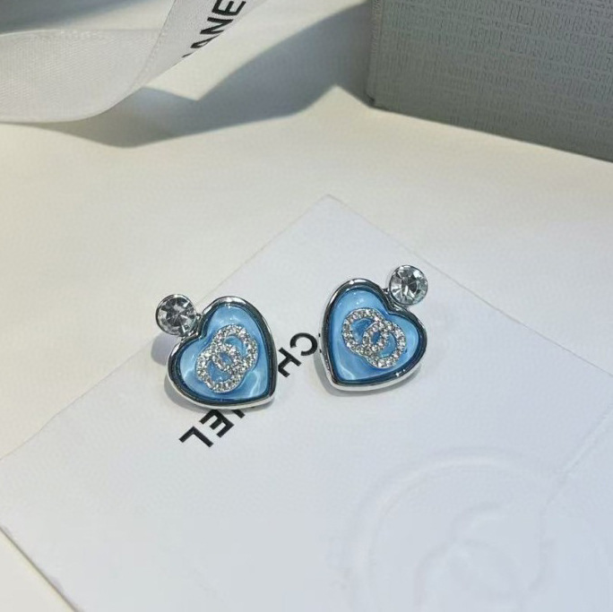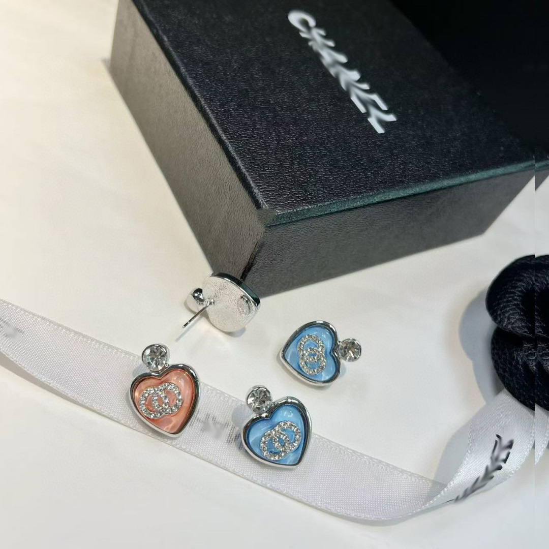 Xiaohongshu Recommends Fashionable and High-End Small Fragrance 25P Blue Pink Heart Double C Resin Diamond Earrings Earrings