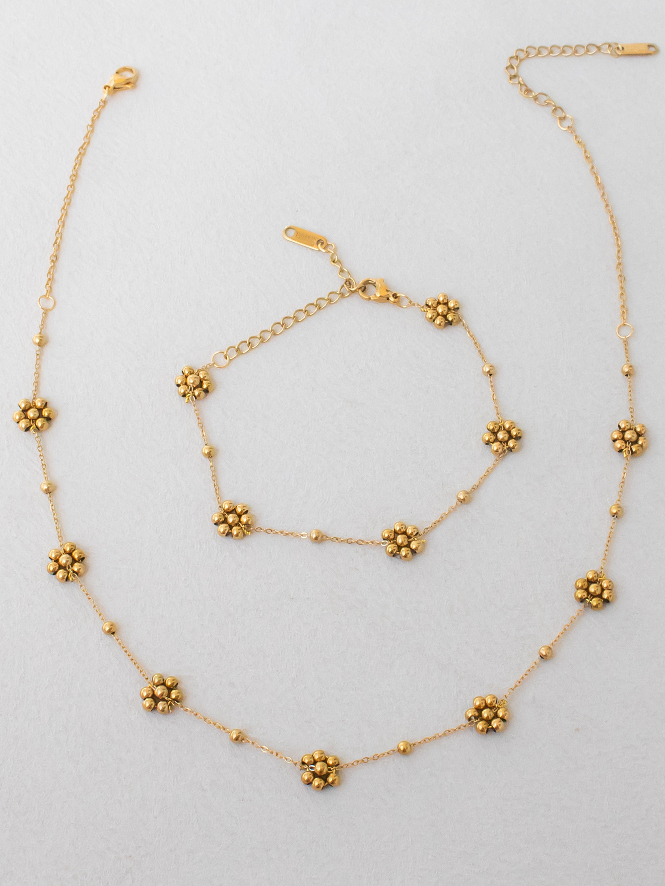 Color: Set of gold bead necklace and bracelet