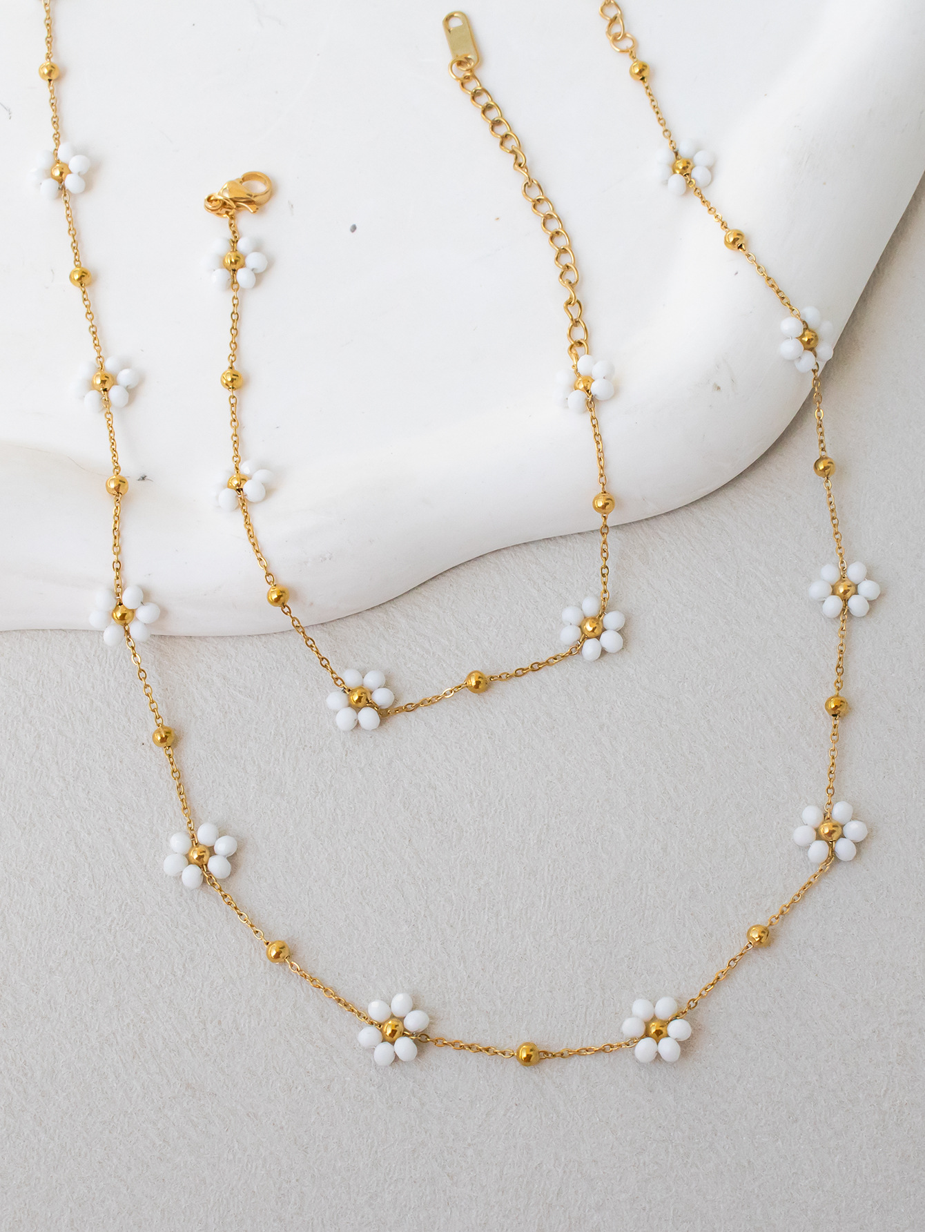Color: A porcelain white necklace