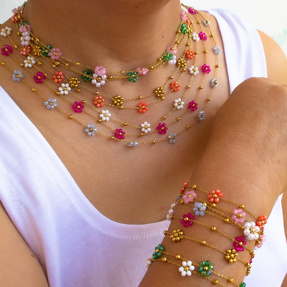 Color: Porcelain white necklace bracelet set