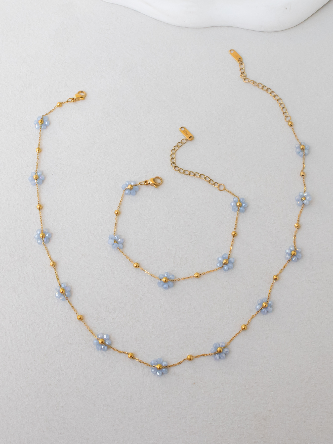 Color: Gray and blue necklace and bracelet set