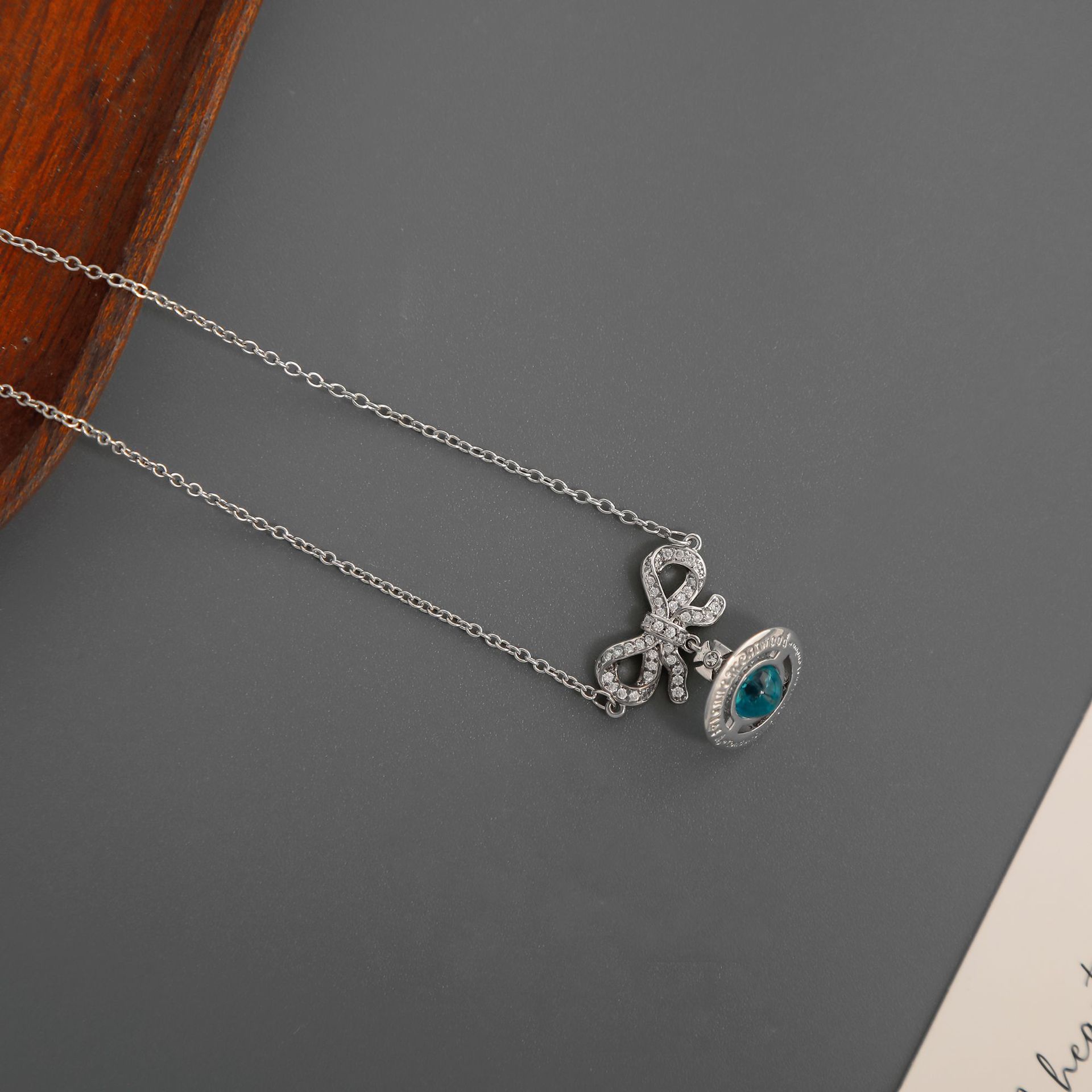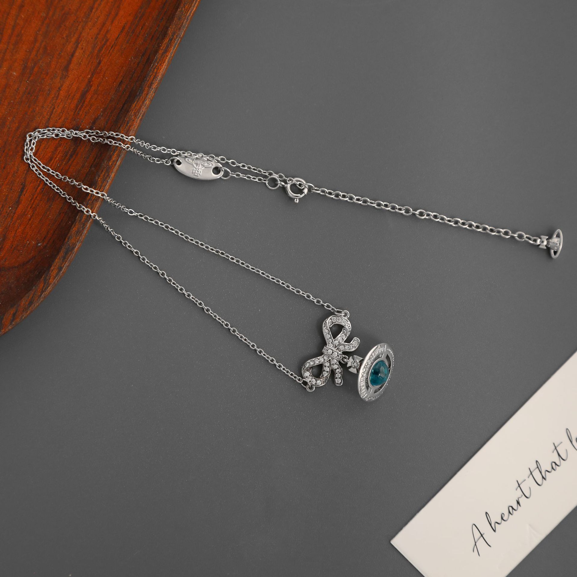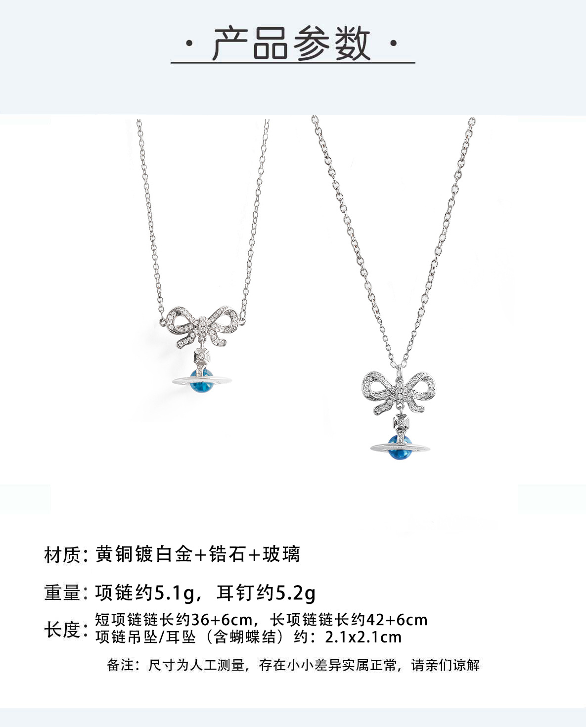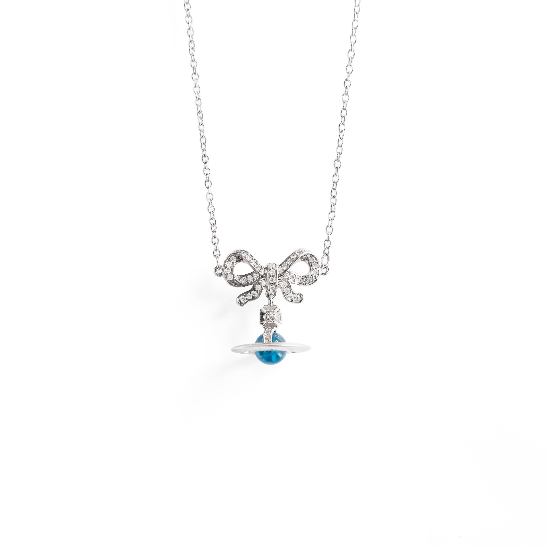 Empress of the West Glacier Blue Bow Necklace High-End Light Luxury Girly Sweet Saturn Planet Earrings Clavicle Chain