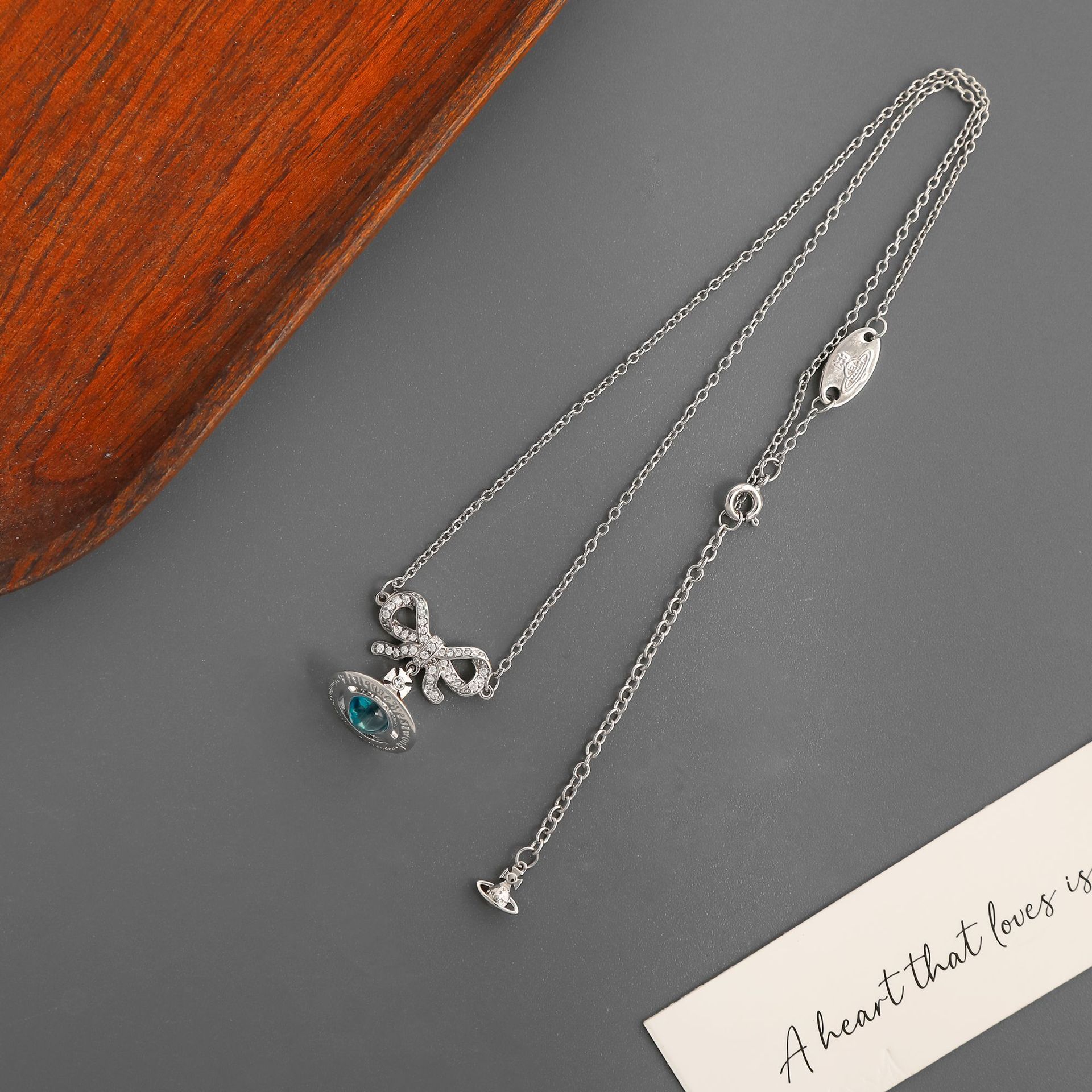 Color: Bow saturn long necklace