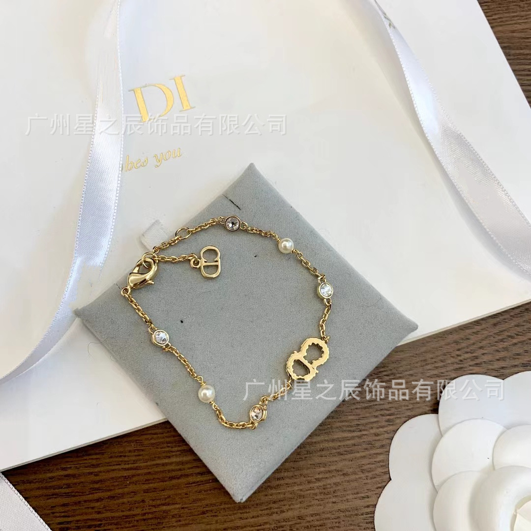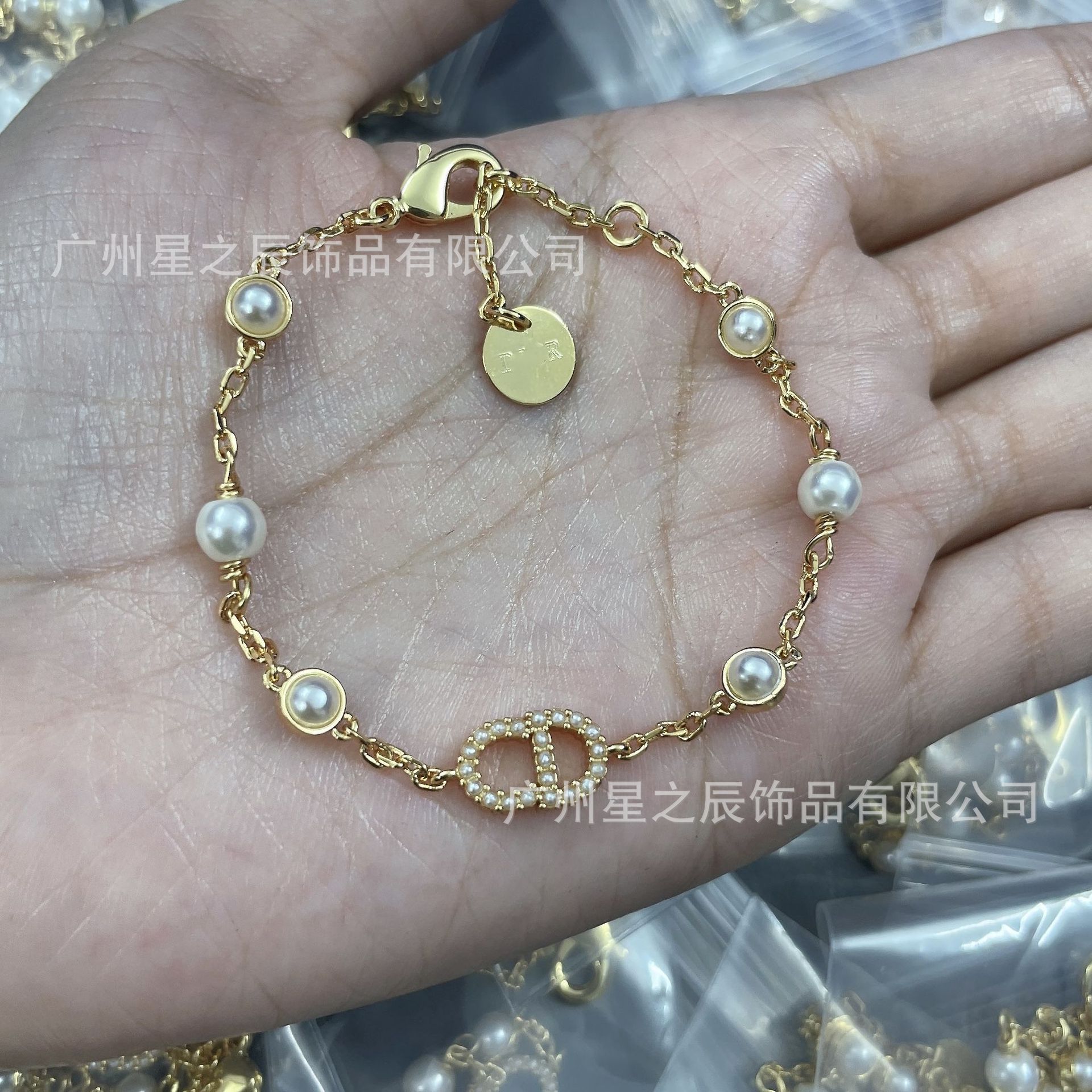 Real Shot of D-Brand Cd Pearl Rhinestone Bracelet with Full Diamond Label for Women, Fashion Bracelet for Women, Factory Wholesale