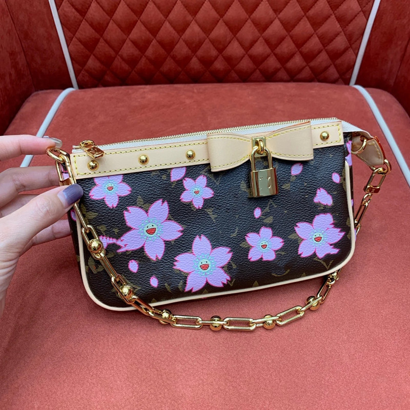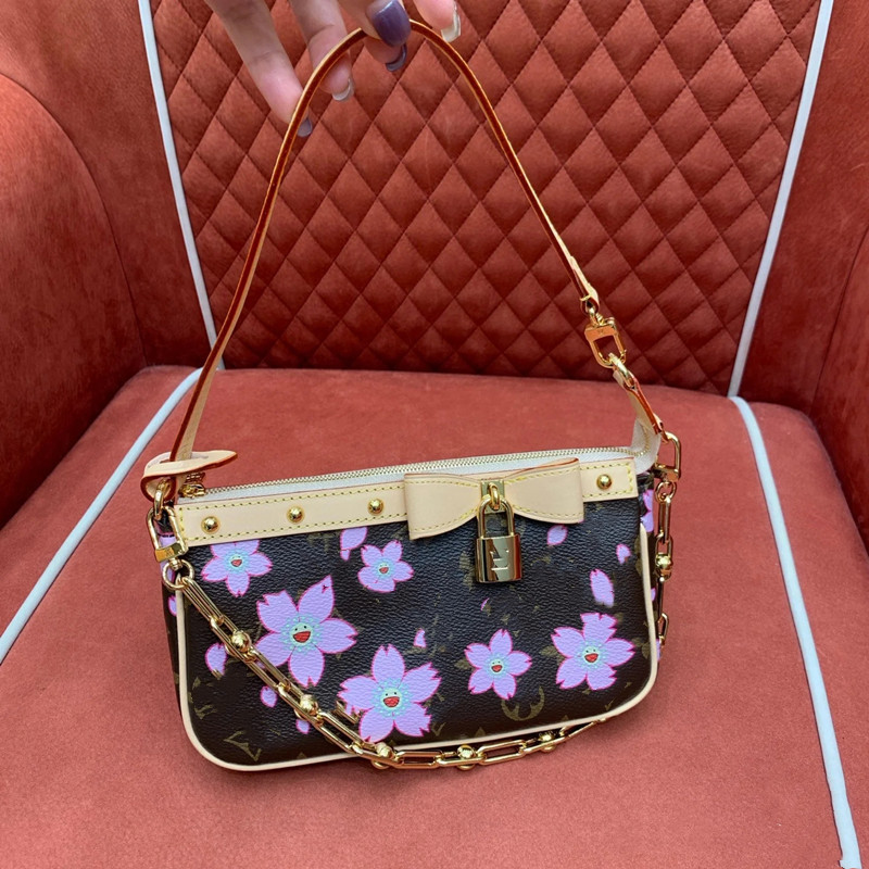 New High-grade Underarm Bag Cherry Blossom Women's Old Flower Chain Mahjong Bag Envelope Bag Shoulder Crossbody Portable Outgoing Bag